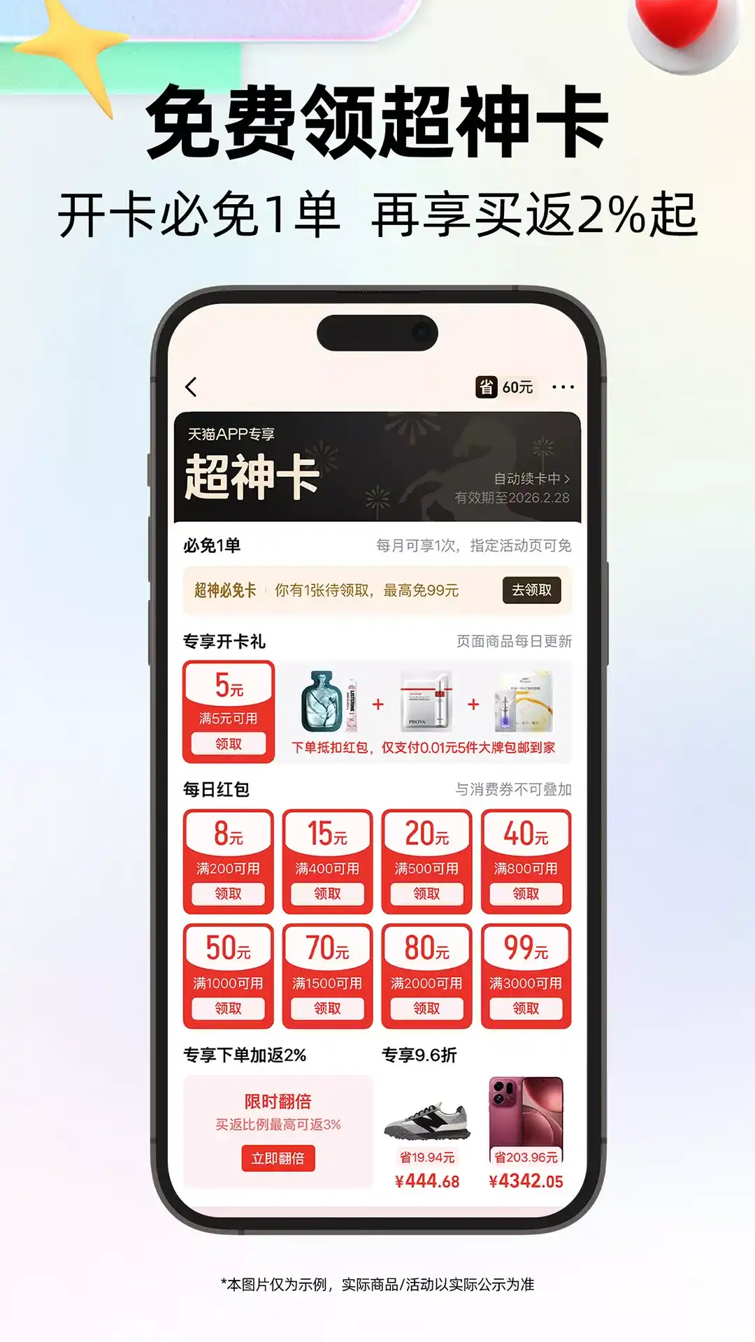 天猫(原手机天猫)是阿里巴巴集团旗下的购物APP。海量官方旗舰店正品保障,为您的品质购物保驾护航。天猫致力于满足消费者对品牌产品和优质商品的购物体验需求。在为消费者提供货真价实的产品的同时,持续创新售前服务并着力提升售后服务,努力打造成线上购物的品质地标,成为越来越多的消费者喜欢并值得信赖的网购平台。 【特色频道】 超神卡:淘宝铂金以上会员专享,每月必免1单!折上再享9.6折!每100元最高再返8元! 猫猫币:天猫下单即返猫猫币,海量商品下单可用猫猫币抵扣,折后再补最高50%,可叠红包叠消费券 多买多返:每单返1%,超神卡用户专享返2% 大牌闪购:爆款低价,整点抢红包 百亿补贴:大牌全网低价,限时买了就返红包 天猫超市:自营商品一次买齐送上门,致力于满足广大消费者全场景生活需求 天猫国际:全球好货新发现,为中国消费者提供全球的进口好物、直达海外生活方式 *具体以商品详情页展示为准 有任何问题和建议,您可以通过以下方式联系我们: 微博:@天猫APP 消费者热线:9510211 手机天猫客户端:我-设置-意见反馈 同样,您给的反馈意见,我们会加速优化改进!