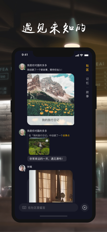 将生活体验做成空间记忆的APP。利用AR技术,帮助我们在物理世界的真实地点上创建、分享生活瞬间,在时空交错的未来,在同一地点的空中,等待指定的人来开启。 【主要功能介绍】 •留下我的 用AR记忆点为生活保鲜。 •发现你的 在日常的司空见惯的场景中,将与之相关的情感牵引而出。 •记录我们的 在“故事”中,和亲朋好友一起记录、共享不同主题的时空手帐。 【使用场景】 • 时空中的慢递 上班路上,一件偶然的事带给我温暖的触动,打开“核心记忆”,留下一段喃喃自语,留给未来路过这里的自己,慢递此时的心情。 • 看得见的温馨 被老板临时抓去出差,急忙在家里留下了我的不舍:厨房里的记忆点提醒他每天要吃水果;客厅里的记忆点叮嘱他睡前关掉电视;飘窗前的记忆点提醒他给我们的茉莉花浇水;卧室里的记忆点是我留给他的小惊喜。 • 打卡“故地重游” 第一次和她旅行,说不出有多幸福,打开“核心记忆”,把我们的浪漫留在沿途,把这些点点滴滴的快乐和小秘密留给未来故地重游的我们,见证这份甜蜜的爱情。 • 时空故事 和闺蜜们一起用“故事”记录我们的美食地图,把快乐的时光留住;和球友们一起用“故事”记录我们打过的每一场球,在不同的球道上分享大家球技的突破;和喜欢摄影的好友一起,用“故事”把照片封存在旅行的地点中;和全家人一起用“故事”记录宝宝的成长,等他18岁生日的时候把这份漫长的记录发给他,这该是最浪漫的成年礼。 在即将迭代的版本中,“核心记忆”将推出更多创建记忆的模版,提供更多有趣的使用场景及绑定物理世界的方式,以此连接人与人、人与时间、人与空间。