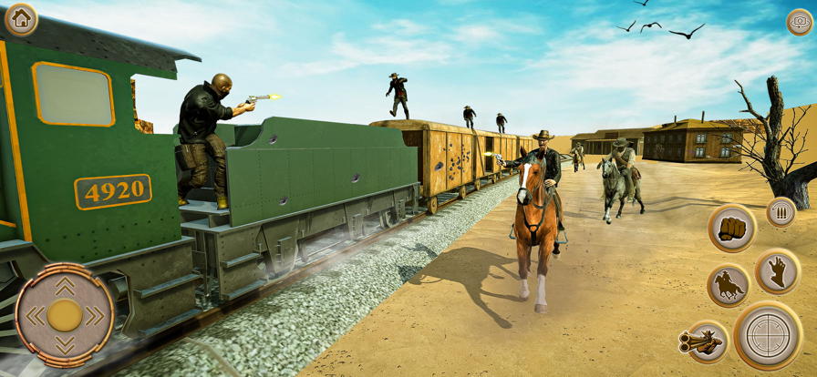 骑手牛仔射击生存是西部题材中骑马与枪射击的结合。 当你进入西部牛仔游戏时,它会为你分配一个虚拟训练师,指导你射击、骑马、剑术。 这款牛仔游戏由五个具有挑战性的模式组成,即故事模式、射击模式、骑马、赏金模式和自由漫游。 以具有挑战性的讲故事的职业模式开始游戏,并了解更多作为牛仔的知识,以享受游戏的其他模式。 如果你进入射击模式,你必须是一名优秀的射手。 骑马模式将测试你所有的骑马技巧,以在镇上出名。 在赏金模式中赚取更多赏金,并使用该赏金购买一匹马和其他最喜欢的牛仔角色。 一旦你熟悉了游戏,就可以进入开放世界模式并继续探索西方环境。