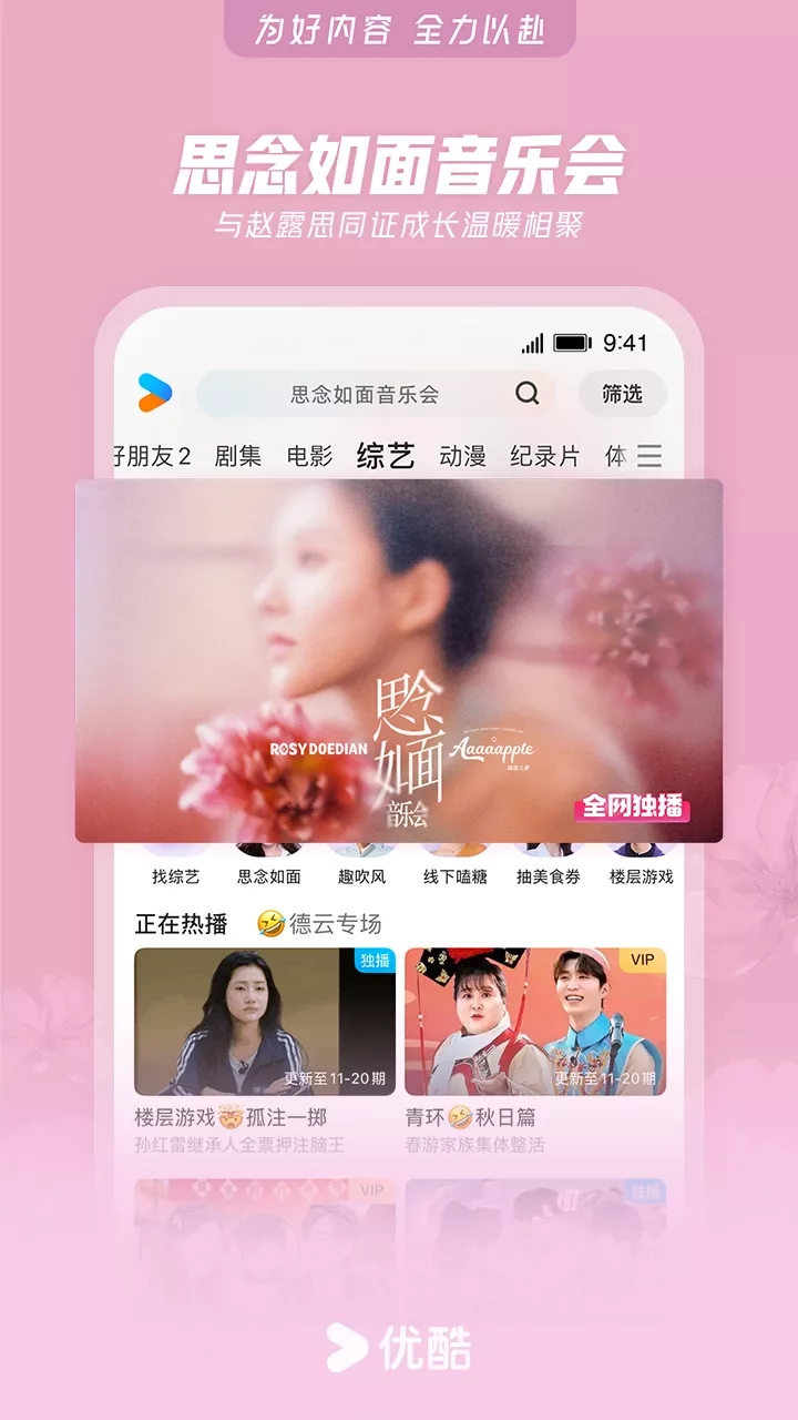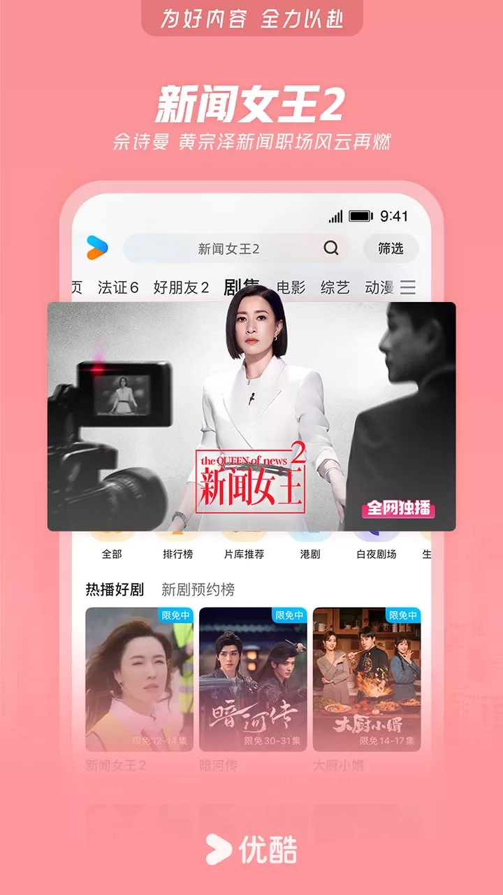 【精品内容,尽在优酷】 《亦舞之城》钟汉良秦岚破镜重圆 《浪浪山小妖怪》草根小妖怪勇闯取经路 《思念如面音乐会》与赵露思同证成长温暖相聚 《凤凰台上》超级甜剧!任嘉伦彭小苒双强追爱 《南京照相馆》尘封底片揭露历史真相 《楼层游戏》破局而上脑力体力高能对决 《神墓 年番》以我魔血染青天!少年踏破生死寻找身世之谜 《暗河传》热血江湖!龚俊执剑闯关破局 《新闻女王2》重磅回归!佘诗曼黄宗泽新闻职场风云再燃 《入青云》侯明昊×卢昱晓演绎宿敌变夫妻 《东极岛》朱一龙吴磊国际大营救 《快乐趣吹风》高能抽风团爆笑出发 《偏爱之恋》高颜值男女海岛追爱 《天相》废相少年度化灵煞逆转天命 《灼灼韶华》热依扎、杨祐宁携手逆袭闯商海 《守护者们》龙套演员误入谍战迷局,结识爱国志士,以命布局联手抗敌 《绝命法官》正义法官张家辉为护子堕入犯罪深渊 《师兄啊师兄》神仙年番看师兄!苟道成圣,稳到飞起 《巨塔之后》宣萱打响豪门继承之战 《炙热游戏:百厨大战》与潘玮柏岳云鹏一起见证“年度厨王”诞生 《献鱼》陈飞宇X王影璐 魂穿少女攻略魔头师祖 《凡人修仙传》爆款IP!杨洋热血修仙逆天改命 《我在顶峰等你》少女重返青春逆袭改写人生 《哪吒之魔童闹海》哪吒涅槃重生高燃之战 《神墓 年番》脱胎换骨!辰南以己魔血染青天 《樱桃琥珀》纯爱无敌!赵今麦张凌赫青春甜恋 《以法之名》年度狠剧!张译扫黑除恶掀司法黑幕 《云深不知梦》大女主复仇爽番来袭! 《藏海传》全员狠人!灭门案引连环杀局 国内外大剧热综、扎堆院线影片、二次元热血动漫……看视频,用优酷APP 【简介】 兼容Phone和Pad设备。优酷中国知名视频网站,优酷App为7亿用户提供电视剧,电影,动漫,音乐,新闻,娱乐,游戏,原创搞笑等海量影视,高清流畅播放,极速离线缓存,支持微博、微信、朋友圈一键分享。强大搜索功能,优酷在手,应有尽有! 【温馨提示】 期许与鞭策,只为更好的起航!当您使用中如有任何疑问或想吐吐槽,都热忱欢迎您致电我们:400-810-0580(或通过“APP-设置-问题反馈”专属通道留言),优酷君一如既往在等你! 同时,优酷君也期待您脑洞大开的创意与想法,为我们建言献策,凡经采纳即赠优酷定制精美礼品一份哦! 《巨塔之后》宣萱打响豪门继承之战