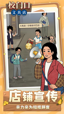 《校门口文具店》是一款怀旧模拟经营游戏,搭载怀旧的90年代场景,配合Q萌2D风格人物建模,让你重拾学生时代的快乐记忆。在游戏中,你化身学生王小明,课余时间协助家人在校门口开了一间文具店。从拔除杂草装修文具店,到挑选文具用品进货、宣传店铺吸引顾客,桩桩件件的事情都需要你亲力亲为。总之就是,这个店没你不行! 铁皮铅笔盒、橡皮泥、七个小矮人、绿舌头..从文具到玩具、冰淇淋,都是90年代独有的回忆。光顾文具店的棒棒娃、王小花等身着白衣校服的同学也将让你秒回学生时代。快来游戏里寻找你学生时代的快乐时光吧! 游戏特色: - 情景再现90年代校门口文具店真实状态; - 细节还原儿时最受欢迎的文具用品、心动玩具; - 策略经营,机智宣传,将文具店做大做强创辉煌; - 俏皮亲切的人物对话,沉浸式体验模拟经营乐趣; - 上手超简单的单机小游戏,好玩到停不下来。