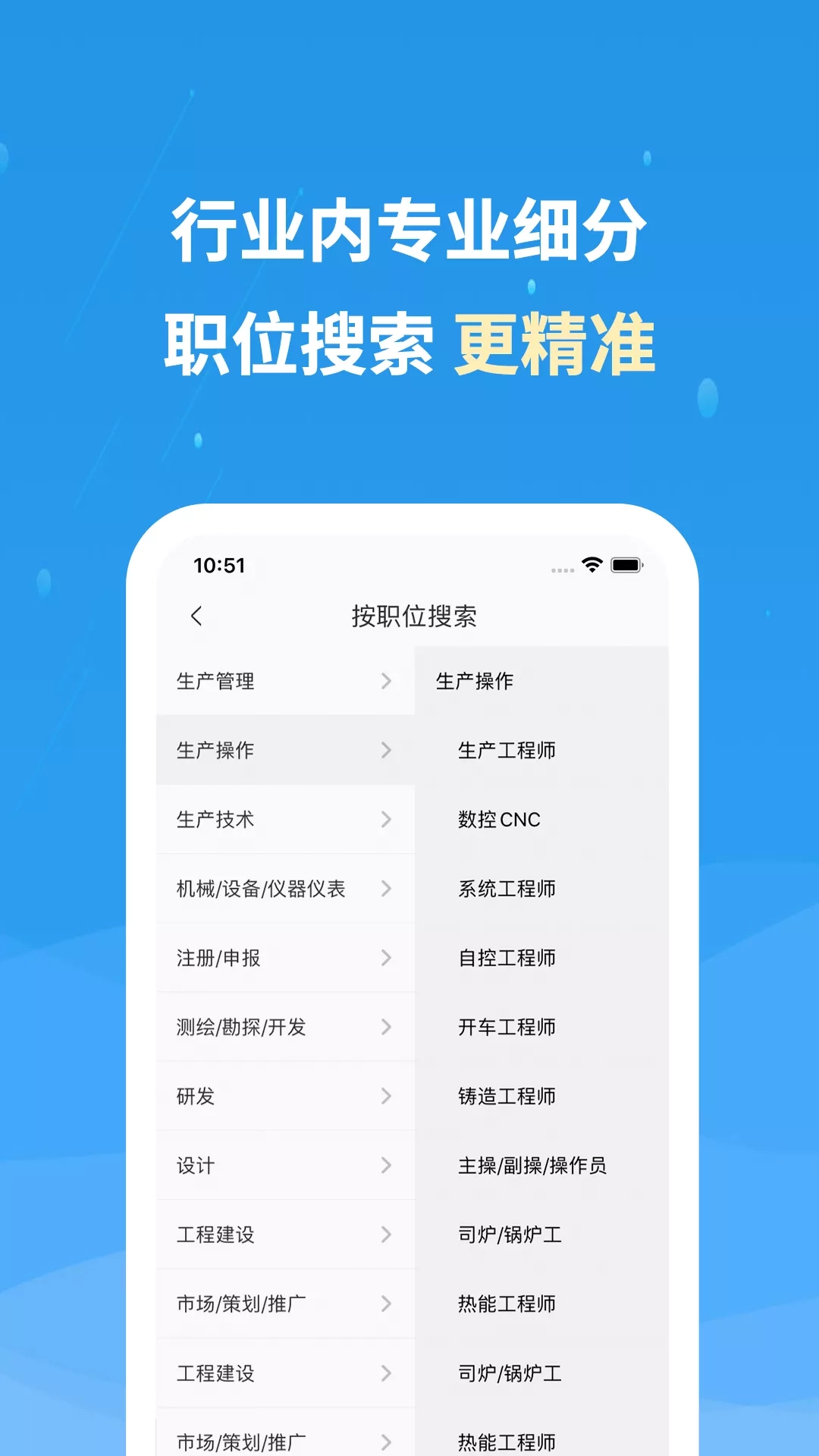 前程无忧51Job,专业招聘、求职平台。 众多知名公司、行业大厂都在前程无忧招聘人才、发布职位。海量职位信息覆盖了各行各业,给求职者提供了丰富的选择。 互联网、金融、房产、汽车、快消……各行业大咖都在这里抢夺人才。 销售、财务、技术、客服、产品……各岗位的求职者都在前程无忧投递简历。 企业选择在前程无忧招聘人才,更高效找到理想人选。 求职者选择在前程无忧寻找工作,更快速找到满意工作。 【职位推荐】岗位太多如何选?填写求职意向,为你精准推荐心怡岗位 【秋招专场】神仙外企、大厂实习、国企热招,高薪热岗助你赢在秋招 【好职专区】关注热门专区岗位上新提醒,掌握一手求职资讯,好工作不错过 【人才推荐】海量人才库,精准推荐,招人就是快 【在线沟通】随时随地,在线回复求职者消息,多沟通更有机会撩到人才 【智能邀约】一键匹配精准人才,邀请投递,让招聘更高效 “比一般的招聘软件靠谱的多,都是真实信息,少走很多冤枉路”by 共赏人 “去努力,去投递,才有机会。离职一段时间了,今天终于收到了offer,是自己心仪的企业。每天登录前程无忧很多遍,从焦虑到后面稳定对待,这个app伴随了我这段最难的时间,感谢前程无忧。”by才子佳人 “适合招聘应届毕业生和白领,尤其是一二线城市。推荐”by herowang “招人挺好用的,简历量多,搜索的简历匹配度和质量高”by hryoyo 我们一直在继续努力,希望每次改变都能让你拥有更好的求职体验,随时欢迎联系我们: 服务热线:400-620-5100 微信服务号:前程无忧51Job服务号(ID: JOBS_51job) 官方微博:祝你前程无忧 抖音账号:前程无忧51job(ID: JOBS_51job) 官方网站:https://www.51job.com 手机网站:https://m.51job.com 邮箱:appsadmin@51job.com