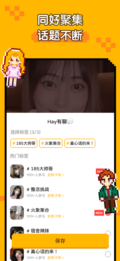 【兴趣组队,说走就走】 想找人一起玩剧本杀、线上开黑、自习打卡或运动挑战?Hay 帮你快速发起组队活动,邀请好友,灵活组队。双人搭档设计,降低沟通成本,让协作更顺畅、体验更沉浸! 【多维互动,高效共享】 前后双摄,实时共享游戏画面、学习进度或任务场景,提升团队配合效率。丰富的创意表情和贴纸,可供自由选择,带来无限乐趣。 【安全可靠,全程守护】 内置AI内容识别与24小时人工巡检,对违规行为零容忍。完善的举报与信誉体系,确保每位用户在公开、健康的环境中参与互动。 Hay 是一款面向年轻人的轻量级兴趣组队工具,让每一次相聚都因共同目标或兴趣而自然发生。 服务条款:https://www.hay.fun/terms.html 隐私协议:https://www.hay.fun/privacy.html 建议&合作联系:hayxiaoeyu@holla.world