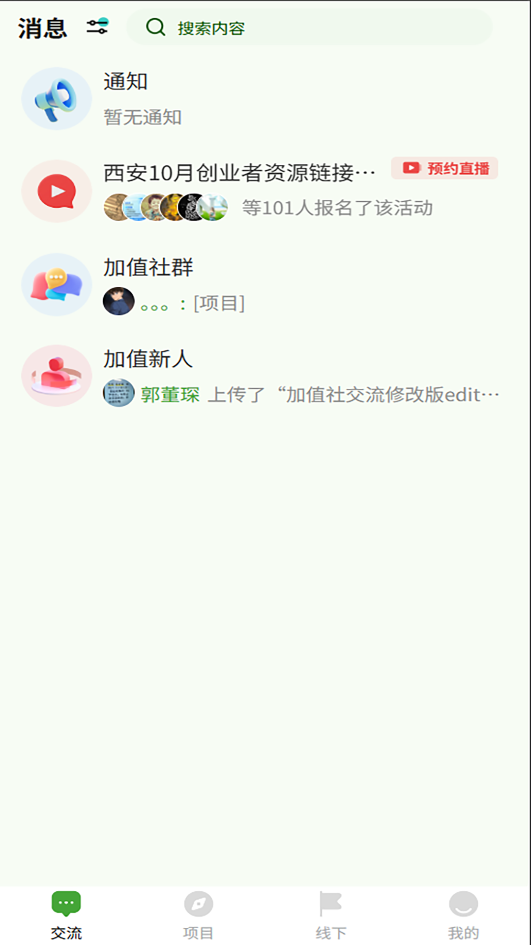 加值社是一款专为创业者和项目方打造的社交软件,旨在连接创业者、项目方、投资者等资源,提供一个交流与合作的平台。应用内包含社群、动态、活动、项目分享、找合伙人等模块,用户可以加入感兴趣的社群,与志同道合的人交流分享;可以发布动态,展示自己的想法和成果;可以参加各种活动,拓展人脉,寻求合作机会;可以分享项目,寻找合伙人,共同实现创业梦想。