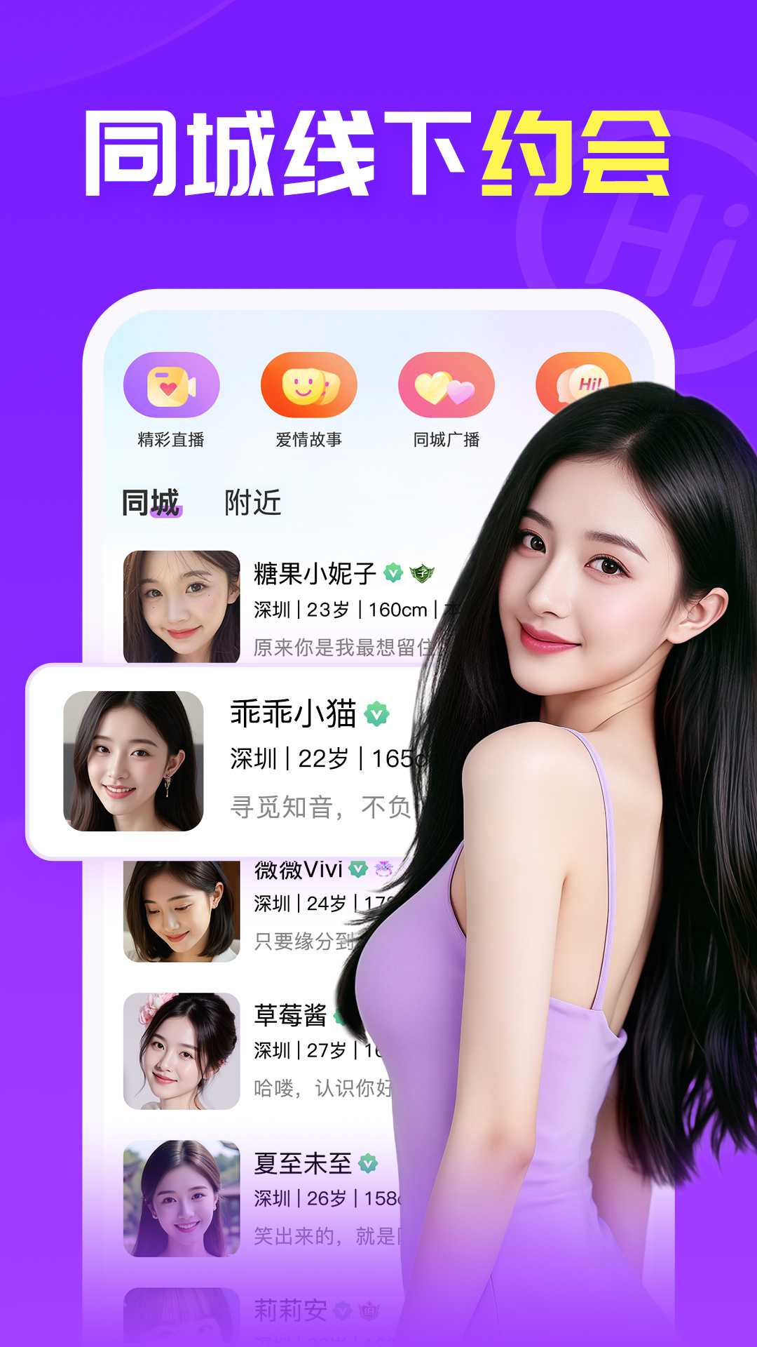 忙碌了一天的你,闲暇的时候,是否想跟志同道合的人聊聊天,倾诉一天的开心事、糟心事。无奈每天在匆忙的城市里与形形色色的人群擦肩而过,却总与适合的那个TA失之交臂。<br>【附近聊天】同城附近人语音视频火速聊天交友约会平台软件。附近人聊天、视频面对面快聊聊天平台,是一款附近陌声陌聊比邻闲聊天的超火爆全新体验的语音视频聊天交友约会APP。<br>【成人约会】同城附近陌生好友陌寻陌聊快脱单;附近陌陌好友随时约见,趣味附近聊告别单身。<br>【聊天交友】同城附近交友约会,不用微信加好友,一键点击附近人,附近好友马上匹配海量真实用户资料,严苛的审核流程,保证用户信息真实可靠。