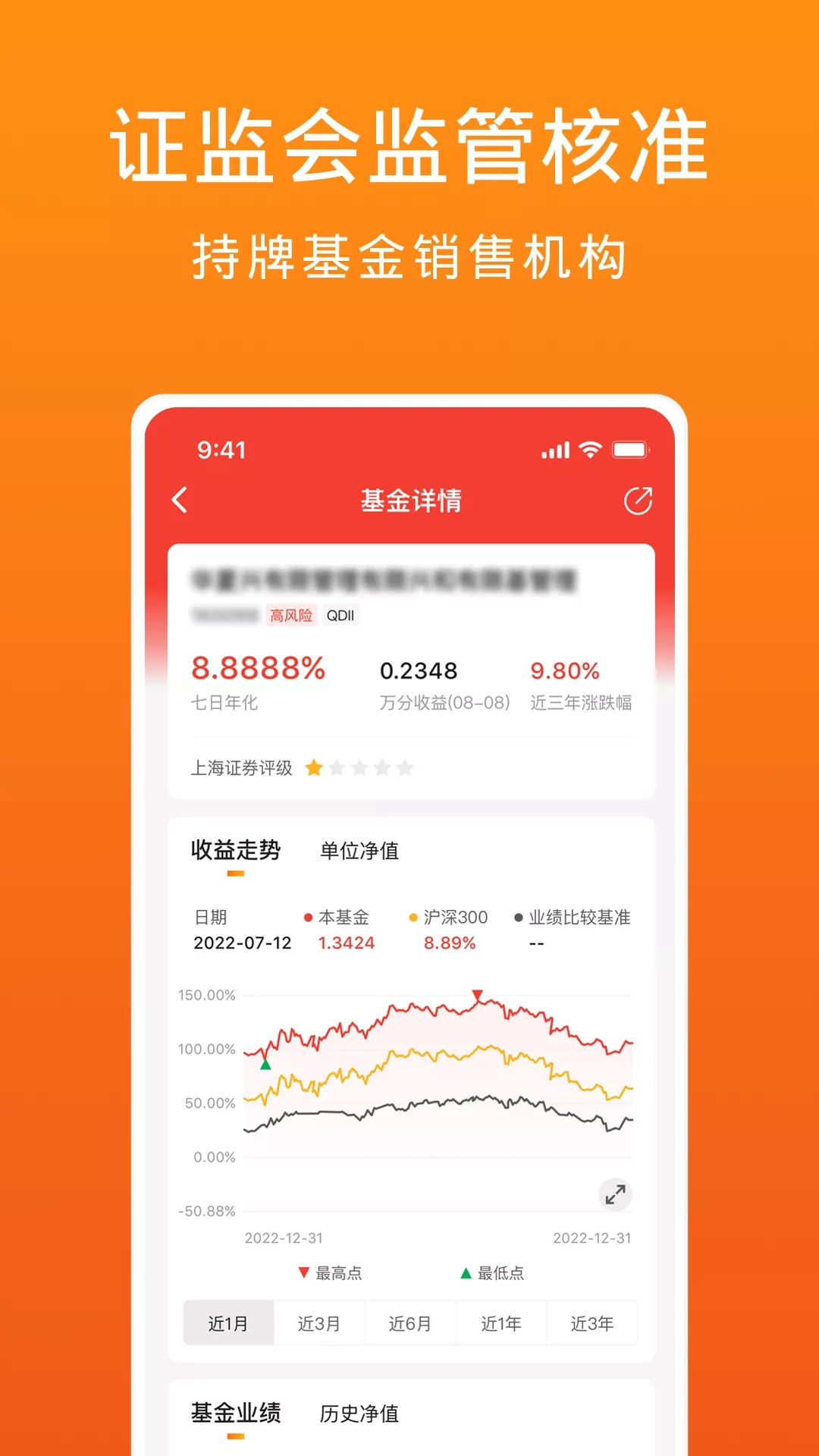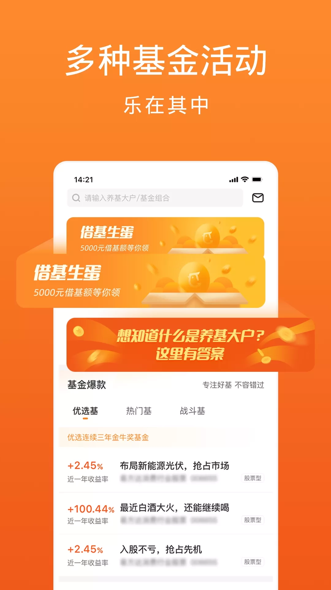 专业理财就上天天基金! 天天基金是上市公司东方财富全资子公司,证监会批准的首批独立基金销售机构。 致力向投资者提供权威、专业、及时、全面的理财服务,涵盖基金交易、金融资讯、理财行业动态、基金数据等内容,更有来自专业机构的基金评级、投资理财分析等帮助投资。 【核心特色】 理财产品多:业内基金多品类覆盖,基金数量超2万只; 基金交易快:便捷开户、交易稳定,理财安全放心; 客户服务好:全年无休,7*24小时客服不间断; 理财费用省:买基金优惠多,申购费率1折起,个别基金除外。 【产品亮点】 1. 活 期 宝:包括多种货币基金,免费充值取现; 2. 稳健理财:汇集低风险和中低风险的中短债基、长期纯债、固收+等产品; 3. 基金优选:汇集中风险以上的股票型基金、指数型偏股基金、混合型偏股基金、QDII等产品; 4. 高端理财:汇集证券公司资产管理计划、基金公司及其子公司专户产品; 5. 智能定投:按期定投,达到目标收益后,若上涨继续持有,若回撤及时止盈。
