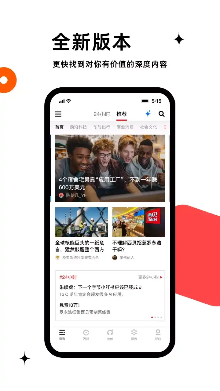 品牌升级,搜狐资讯全新来袭!搜狐新闻资讯版正式更名为搜狐资讯。 搜狐资讯,带你发现生活的乐趣,让你的阅读更有价值! 产品特色 -热门竞猜:热门事件、八卦话题、生活小常识,只有你想不到,没有我们猜不到!赢家风云榜只为爱竞猜的你! -任务中心:丰富的任务中心,阅读,看推送,分享都能获得狐币!邀请好友一起玩让你收益不停,赚到手软!新用户1元即可提现,狐币秒变人民币! -特色栏目:独家栏目等你来看,《今日要闻》带你看每天最重要的事,《趣闻精选》带你看那些你不知道的事,《娱乐小报》带你了解娱乐圈最近发生的大事! -个性化推荐:越用越懂你,你专属的兴趣阅读管家,无论是穿衣美妆时尚八卦,还是科技汽车历史军事,统统满足你! 意见反馈: -应用内反馈:设置-意见反馈 -微信公众号:搜狐资讯原搜狐新闻资讯版 -QQ粉丝群:205977706、456437973