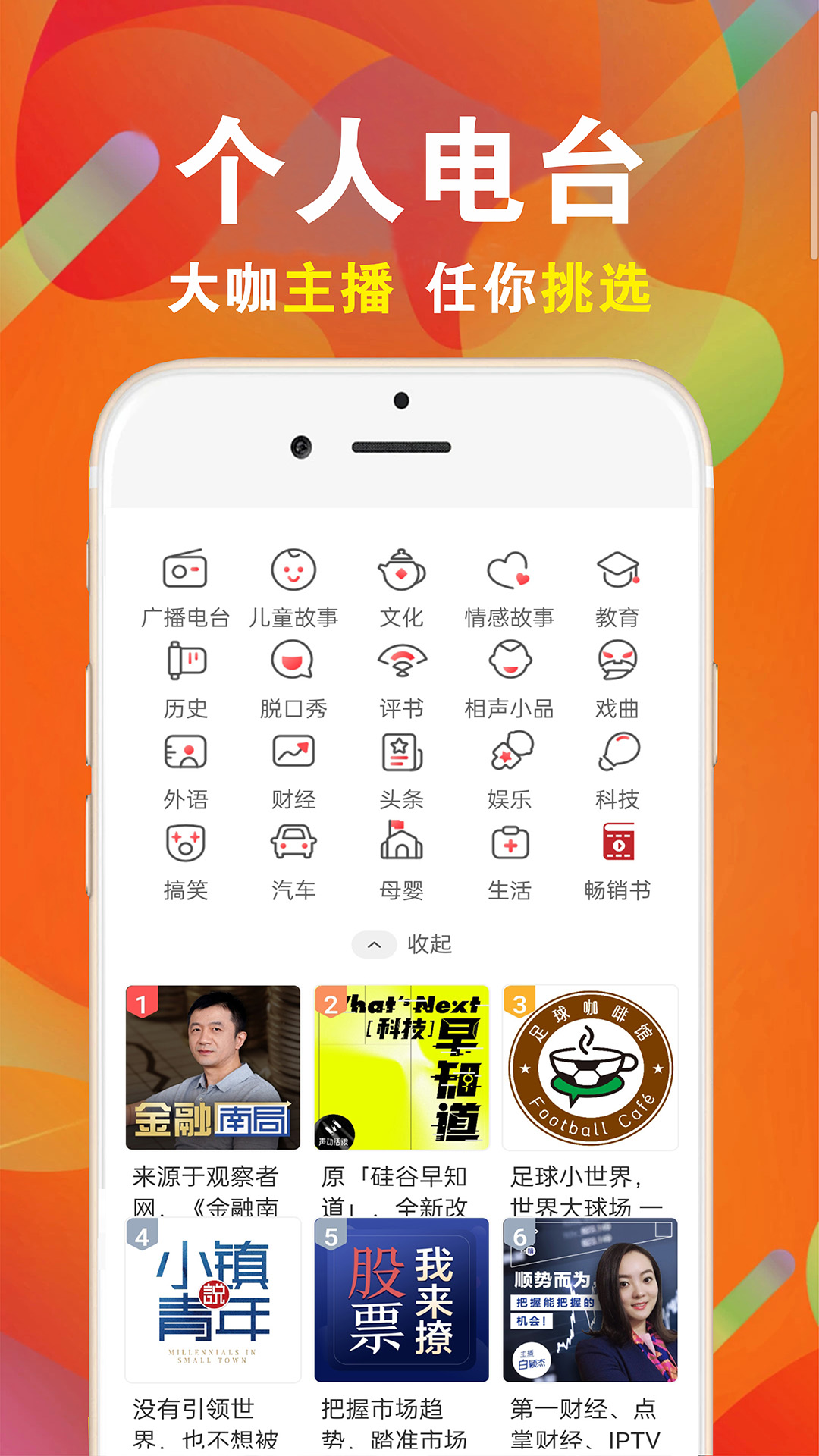 这里是火花碰撞的电台节目汇集地,精细的广播节目分类,你喜爱的电台节目想听就听。界面清新简洁,功能全面的免费收音机,解放双眼免费畅听!<br>海量电台资源,畅听无极限!广播、头条、听书、人文历史、资讯、百家讲坛、商业财经、军事、笑话段子、英语、情感生活、儿歌故事、健康生活、文学名著、百科等精细的节目分类,优质的内容呈现,懒人的收听方式,让你身临其境,探索有声世界的高峰!<br>可以提前预定节目、回放收听节频fm,想寻找收音机在线收听的用户立即下载使用吧!让它成为您的私家随身电台、午夜节目、娱乐互动的选择。<br>听电台、听新闻、听音乐、听段子...让您上下班路上不再孤独,堵车也不再无聊,更不要说一个人的夜,一路收听,一路畅通!