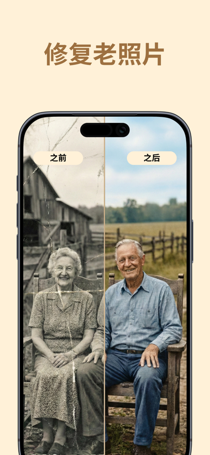 用AI的力量恢复您珍贵的家庭记忆。Restory是一款一站式老照片修复翻新应用,将残破、褪色、黑白的旧照片瞬间变为高清精美的彩色图像。无论是修补破损照片、黑白上色、人脸修复、画质增强还是让老照片动起来,Restory都是您的专业神器。 人脸修复 找回老照片中清晰的人脸细节。Restory先进的AI增强面部特征,去除模糊,恢复被时间磨损的肌肤纹理。以惊人的清晰度修复祖父母照片、婚礼照片和童年回忆。家庭旧照人脸修复的最佳工具,一键美化处理。 黑白照片上色 用历史精准的色彩让您的家族历史栩栩如生。AI分析每张图像,为黑白和怀旧复古照片添加自然逼真的颜色。给老照片上色从未如此简单:发现您年代久远的记忆本来的色彩。 去除划痕与修补破损 告别撕裂、折痕、灰尘斑点和折叠线。Restory的智能修补系统检测并去除每一道划痕和破损,同时保留您珍贵照片的原始细节。修复被时间损坏的残破旧照,锐化图像,去噪提升画质。 高清画质增强 将模糊、低分辨率的照片变为清晰锐利的高清图像。将老照片提升至原始尺寸的4倍,完美适合打印和装裱。AI驱动的最佳图像清晰度改善和分辨率提升,让每张旧照变得精美专业。 AI智能生成重建 给您的老照片焕然一新的现代面貌。AI重新想象您的复古照片,同时保留人物的本质和身份。非常适合严重破损、需要超越简单修复的图像处理。 照片动起来 将任何肖像变为动态回忆。Restory从一张照片生成带有自然头部动作和表情的短视频。让老照片动起来,看家庭照片变成生动的动画视频。 为什么选择RESTORY? • 6大AI工具合一:修复、上色、画质增强、修补、重建、动画。没有其他老照片修复神器提供如此多功能。 • 快速处理:大多数照片修复在30秒内完成。 • 隐私优先:您的照片在24小时内自动从服务器删除。 • 无水印:订阅用户获得干净的全分辨率导出。 • 简单易用:3步操作。上传,选择功能,下载。 • 专业品质:尖端AI驱动的专业级效果。 适合以下场景: • 修复老旧家庭相册 • 修补有划痕和破损的传家照片 • 家谱和寻根项目 • 为亲人制作礼物 • 数字化和改善旧照收藏 • 修复模糊、撕裂或褪色的照片 使用方法 Restory使用简单的积分系统。每个功能根据复杂度消耗1-15积分。订阅获取积分并解锁所有功能。 PRO周订阅 — ¥68/周 • 每周50积分 • 解锁所有功能 • 无水印 PRO年订阅 — ¥298/年(超值优惠 — 省90%) • 每年200积分 • 解锁所有功能 • 无水印 立即下载Restory,让老照片焕发第二春! 联系我们:info@restory.photos 隐私政策:https://www.restory.photos/privacy 服务条款:https://www.restory.photos/terms