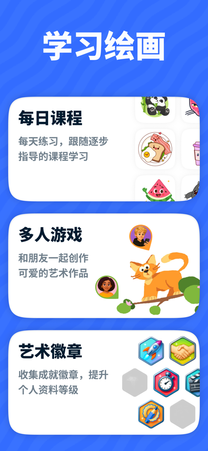 欢迎来到Drawly——绘画与友谊相遇的地方! 准备好享受乐趣、发挥创意并提升你的绘画技能了吗?Drawly是最令人愉快的应用程序,让你与朋友一起学习绘画,或在过程中结交新朋友!无论你是在画可爱的动物、动漫角色,还是古怪的涂鸦,Drawly都是表达自我和探索艺术天赋的完美场所。 Drawly每周提供新鲜、精彩的绘画课程,所以总有新东西等你发现和掌握。邀请你的朋友,加入多人绘画房间,在一起完成有趣的绘画挑战时互相加油鼓劲。 选择你最喜欢的主题——从可爱的生物到酷酷的猫咪——按照简单的分步指南创作精彩的杰作。追踪你的准确度,记录一次成功的次数,庆祝你的进步! 加入最友好的绘画社区,用创意点亮你的每一天。是时候一起绘画、学习和欢笑了! 立即下载Drawly,开启你的艺术冒险! 可能需要有效订阅才能访问所有功能。 隐私政策:https://getdrawly.com/privacy 服务条款:https://getdrawly.com/terms