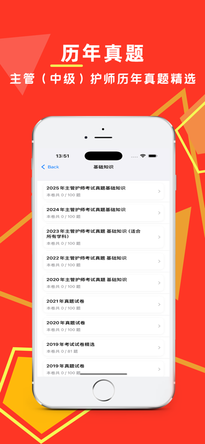 主管护师题库适用于主管护师、中级护师、护理学中级、主管护士、执业护士、初级护理、中级护理等护师考试备考考生的必备题库软件。 主管护师题库包含专项练习,章节练习,模拟押题,历年真题、模拟押题、真题汇编、中医护理学等护理题库类目,选择专项练习,把握命题思路,点拨解题技巧。 主管护师题库由专业人员根据考试大纲编撰而成全面囊括进护士题库、初级护理、中级护师、主管护士题库等护师考试的易考考点,本软件可以按章节,科目同步练习,考点难点全网打尽,主管护师题库是你的备考王牌护士通,您的中级护师备考助手! 本软件包含科目:护理学(专业代码368)、内科护理学(专业代码369)、外科护理学(专业代码370),妇产科护理学(专业代码371)、儿科护理学(专业代码372)、社区护理学(专业代码373)、中医护理学(专业代码374)等科目。 【功能特色】 【专项练习】基础知识、相关专业知识、专业知识、专业实践能力等科目考题A1/A2、A3/A4、B型题,并有答案解析。 【章节练习】按照章节划分的考题,含解析。 【历年真题】近几年历年真题含解析。 【模拟押题】模拟押题,检测复习成果。 【必考考点】高频考点必背知识点等。 【错题库】可自动加练习过程中错题加入收藏,以便反复练习。 【收藏夹】可在练习过程中自行收录题目或考点到收藏夹,形成自己的小题库,针对性练习,提高通过率。 安装后可离线浏览,不用联网也可以浏览,速度快,无广告。定期更新题库。 内科护理学A1/A2型题 内科护理学B型题 外科护理学A1/A2型题 外科护理学B型题 妇产科护理学A1/A2型题 妇产科护理学B型题 儿科护理学A1型题 儿科护理学B型题 护理健康教育学A1型题 护理健康教育学B型题 医院感染护理学A1型题 医院感染护理学B型题 护理管理学A1型题 护理管理学B型题 内科护理学A1/A2型题 内科护理学A3/A4型题 内科护理学B型题 外科护理学A1/A2型题 外科护理学A3/A4型题 外科护理学B型题 妇产科护理学A1/A2型题 妇产科护理学A3/A4型题 妇产科护理学B型题 儿科护理学A1/A2型题 儿科护理学A3/A4型题 社区护理学A1/A2型题 社区护理学A3/A4型题 社区护理学B型题 儿科护理学B型题 内科护理学A1/A2型题 内科护理学A3/A4型题
