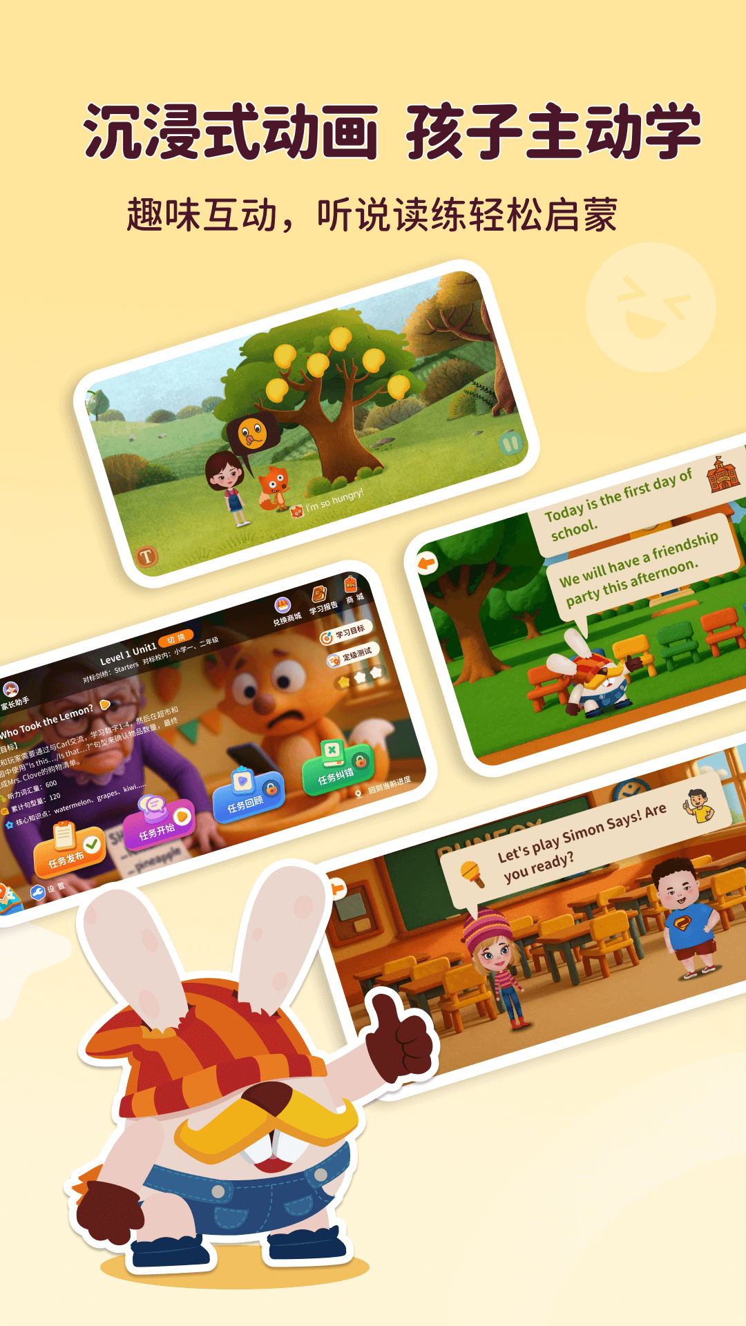 01 全球1000万+家庭信赖 <br>150集沉浸式英语故事,东方版【哈利波特】,大量冒险、魔法等题材,孩子化身主角参与剧情互动,让孩子趣味学习;<br><br>02 好莱坞演员原声配音,超5100分钟原版对话<br>与剑桥大学教育研究生院专家合作开发,Hollywood好莱坞配音演员原声录制,超5100分钟的对话,输入纯正美音,对【中式英语】说拜拜;<br><br>03 真实生活场景,超2500+单词卡片<br>丰富的生活化场景:饭店、书店、农场、超市等,超2500+日常对话词、句,让孩子掌握大量单词的同时可以充分开口表达,从而培养纯正流畅的语言能力;<br><br>04 丰富配套工具,秒变学习神器<br>1000+好玩的卡片闯关游戏,激发兴趣,增强记忆;50首动感儿歌,1000+分钟小狐狸FM熏听,2500+拓展训练,海量配套学习工具,秒变学习神器。