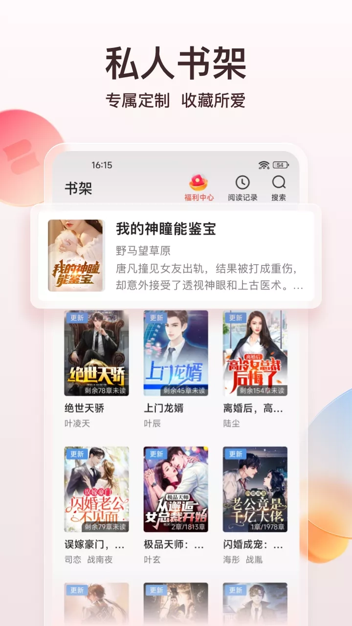 围猎、入青云、与晋长安、锦月如歌、生万物、凡人修仙传、国色芳华、淬火年代长安的荔枝、折腰等经典原著。 万仙来朝、万剑朝宗、燃烧的蜂鸟.时空追凶1990、血孩子、保护我方族长、第一天骄、清朝生活实录、龙魂剑圣、何日请长缨、牧神记、深空彼岸等热门网文出版图书。 【热播影视】 《大生意人》: 陈晓、孙千主演《大生意人》原著,晚清商界博弈破旧立新,借势谋局逆风翻盘,解锁“钞”级玩家的奔"富"传奇! 《凤凰台上》:任嘉伦、彭小苒主演《凤凰台上》原著,双强帝后爱恨纠葛,爱与江山此生不负! 《唐朝诡事录》:杨旭文、杨志刚主演《唐朝诡事录之长安》原著,朝堂诡谲莫测,长安风云再起,破八大诡案,揭身世之谜! 《四喜》:童瑶、蒋欣 主演同名电视剧原著,百态人生笑泪交织、家庭烟火治愈人心!平凡中捕捉幸福,一起寻找成长与自由的答案! 《大乔小乔》:赵露思、陈伟霆主演《许我耀眼》原著,表面光鲜的婚姻下隐藏着谎言与操控?一场关于爱与自我的耀眼重生! 【霸榜好书】 《神墟之主》:穿越仙门,他从记名弟子起步。凭借蚀文天赋与无双智计,一剑斩万劫,重定人道天!看张衍如何以凡人之智,问鼎仙途之巅! 《大道争锋》:携蚀文天赋穿越仙门,从记名弟子起步,看张衍如何以凡人之智,问鼎仙途之巅! 《天堂蒜薹之歌》:如果你想读一部莫言,又怕《丰乳肥臀》《生死疲劳》太过厚重,那么它是绝佳的起点。 故事紧凑,情感炽烈,是莫言创作中“愤怒”与“介入”色彩最为直接和浓烈的作品之一。 《独步成仙》:凡人流巅峰之作!别人修仙靠天赋,他靠嗑丹药肝到三界巅峰! 《全体起立!真龙归来!》:替罪入狱三年,王者归来第一剑,先斩负心人! 《桃花源没事儿》:看马伯庸如何借桃花源写尽当代打工人的仰卧起坐人生。 《草民》:蔡崇达的“故乡三部曲”收官之作,他致力于展现普通人骨子里的韧性和生命尊严。 《便携式桃源》:种瓜得仙草,养鸡变凤凰!骗子乞丐给的破画竟是桃源金钥匙?这波操作直接开启种田修仙暴富路! 【精彩短剧】 《今夜星光点点》《折云作舟》《不问归处》《寒门》《余生无你皆荒年》《归来已是陌路人》《天命凤女》《午夜花店》 【产品功能亮点】 -海量书库-超60万册正版图书,百万小时听书 -精彩短剧-热门爆款短剧任意看。 【福利活动中心】 读书会员、影视热门图书,福利送不停! 【新人福利】新用户海量内容免费看~ 【分类齐全】玄幻、奇幻、科幻、言情、仙侠、都市、出版、历史、悬疑推理、青春校园、女生同人等等~