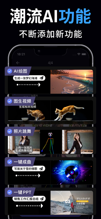 AI视频绘图写作精灵,可以为你一键生成新媒体视频短剧以及图片,还能一键创作原创歌曲。解锁创意新境界。 【一键生成视频】 你只需要提供一句话描述,AI视频绘图写作精灵就能快速生成完整故事,并且根据故事内容自动生成视频。 【图生视频】 两步让你的照片动起来,让回忆重新注入活力 【AI绘图神器】 输入一段画面描述词,并选择你喜欢的风格,便可以生成一张令你满意的艺术画作。 【一键成曲】 一个灵感,就能创作一首原创歌曲。人人秒变音乐家。 快来探索吧!会有惊喜哦~ 自动续订条款: 我们的的标准订阅选项是: 38元/周订阅 订阅依照选择的订阅计划的价格,按月度或年度计费该定价和“Apple's App Store Matrix”在其他货币所确定的价格区间相同。 ·如果没有在免费试用到期前至少 24 小时关闭自动续费,免费试用将会自动更新为付费使用。 ·请注意:如果在免费试用期 (如有提供)内购买高级订阅,免费试用期任何未使用的部分均将被视作放弃。 ·随时可以通过 iTunes 账户设置关闭自动更新以取消免费试用或订阅。此操作必须在免费试用期或订阅期结束前 24 小时完成,以免产生费用。取消将在当前订阅期最后一天之后的日期生效,将被降级到免费服务。 ·帐户将在当前期间结束前 24 小时内收取续订费用,并确定续订费用。 用户协议:https://xy.168play.cn/userAgreement?a=aiboxios VIP协议:https://static.x7e3.cn/aibox/vxy/aibox_vip_xy.html 隐私政策:https://static.x7e3.cn/about/aiboxios/privacy_com.mobo168ios.aibox.html