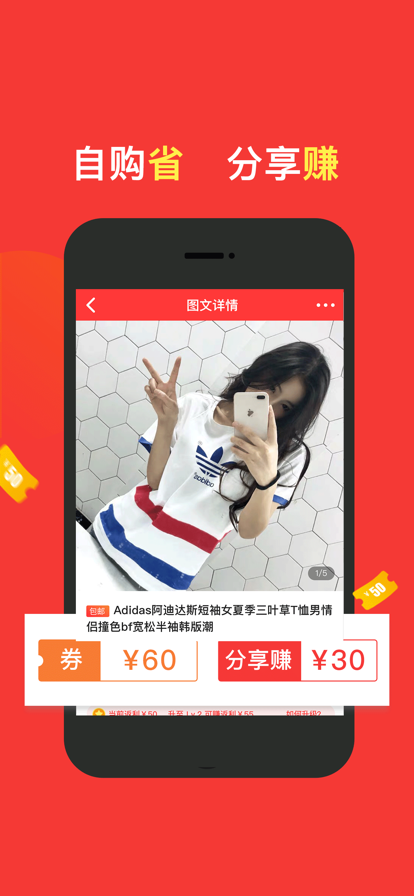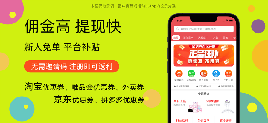 涵盖淘宝/京东/拼多多/唯品会/外卖优惠券。 ●每日上新,众多优质优惠券限时抢,享巨额优惠 ●券额大,佣金高,各种优质商品低至五折就能买到 ●天猫、京东各大品牌商品,很多都能领到优惠券 【功能亮点】 分享赚钱:高额佣金,佣金可达售价一半以上! 极速提现:一元可提现,闪电到账,安全可靠!