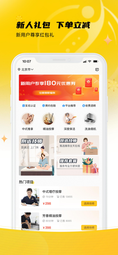 推推到家app是一家专业的O2O上门服务平台,平台服技术全部经过真人审核认证,专业技术资质认证,为用户提供专业、正规、安全、便捷的上门推拿按摩服务,以及高标准的家政保洁服务。 【服务项目】 1、按摩推拿:中式推拿/精油按摩/芳香SPA/康复理疗 2、深度保洁:小时工/家具清洁/厨卫清洁/墙面地面清洁/玻璃清洁/收纳/空气净化 3、家电清洗:油烟机清洗/空调清洗/冰箱清洗/洗衣机清洗 【产品体验】 1、上门服务:用户可以根据自己的需求,选择合适的服务项目,同城24h极速上门到家。 2、服务人员推荐:对于服务好、好评多的理疗师/保洁员,平台经过认定后,统一放在推荐专区展示,方便用户快速寻找。 3、附近服务人员:用户可以根据地图和定位,快速找到距离近,上门快的理疗师/保洁员,省去多余的等待时间。 4、优惠券:先领券再消费,给到用户优惠。 【核心体验】 1、收费透明:价格透明,明码标价,全程无额外费用。 2、理疗师认证:理疗师全部经过实名认证,经过真人实拍。