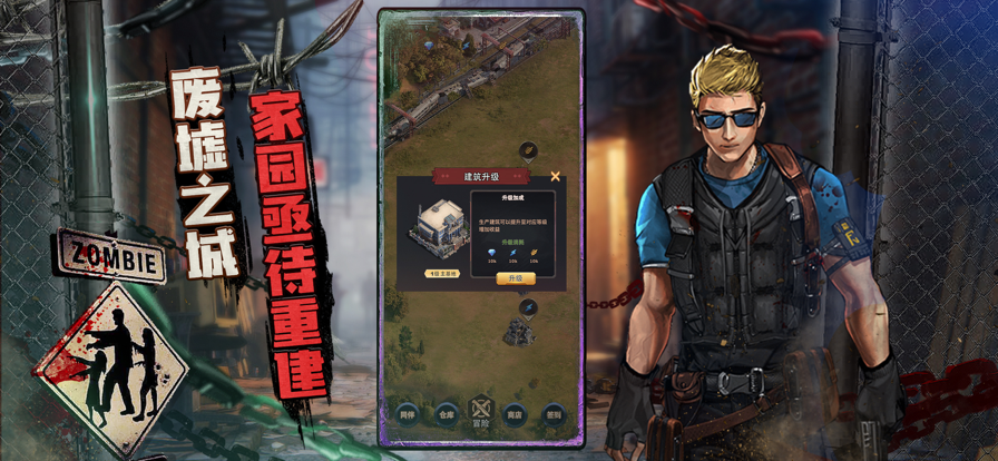 末日降临的时候,在变异丧尸、各种怪物横行的战场上,你将展开一场场割草般畅爽的战斗,探索、收集、建造丰富的物资与生活设施,打造装备武器,让自己在这里活下去! 【精英招募,组建废土小队】 末世之中,每一位战将都拥有独特的战斗技能,合理利用小队技能搭配,可以更好发挥你的队伍战力哦 【发展科技,经营避难所】 研究抑制病毒感染的药剂,经营末世幸存者避难所,拯救更所的人类,共同抵御变异生物! 【丧尸围城,构筑塔防战线】 配合陆地作战兵种,在城墙搭架机枪大炮。不同城防技能让你轻松割草,当丧尸被击溃的时候,黎明即将到来! 【联盟协作,团战全军出击】 末世单打独斗已无法满足生存需要,与志同道合的伙伴们,通过组建联盟,合力抗敌,拓展幸存者避难基地!