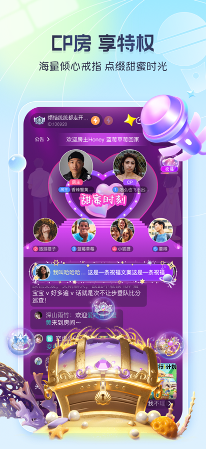 功能介绍: 【附近的人】快速查看身边有多少个有趣的TA; 【动态】处对象、约开黑、晒自拍...随时随地刷出各种有意思的内容; 【处CP】夜深人静不再孤单,找到自己的专属陪伴; 【语音房间】相亲、交友、pia戏 、真心话大冒险,好玩又有料的房间应有尽有。