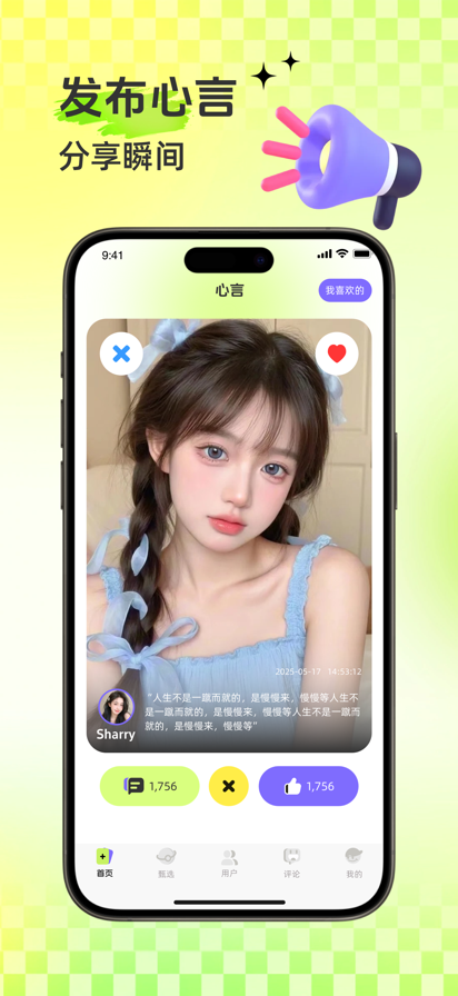 一款为了实现真实、用心交友而设计的,陌生人交友软件。在这里,你可以通过多种维度进行筛选,寻找自己中意的人。每一个注册用户,都需要尽量完善自己的个人信息,并确保真实,从而让大家放心交友,分享开心快乐,拒绝孤独... 同时,《走心漂流瓶》也是一款女生优先的交友软件,女生享有主动权,避免被骚扰,从而提升整体交友氛围,方便大家真真实实的交朋友,开启一段属于你们的美好回忆。 欢迎大家下载体验,并提供宝贵意见,帮助提升软件使用体验,感谢!