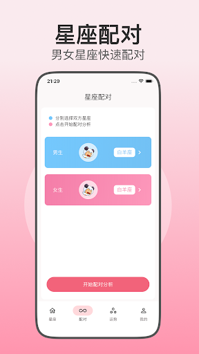 星座配是一款帮您分析星座的工具,功能包括:星座解析,恋爱配对,生肖配对,运势查询,图解星座,命理分析等。<br><br>【星座解析】:<br>包括性格特点,掌管宫位,显阴阳性,最大特征,主管星球,幸运颜色,搭配珠宝,幸运号码,相配金属等;<br><br>【星座运势】:<br>包括综合运势,爱情运势,事业运势,财富运势以及健康运势;<br><br>【星座配对】:<br>用直观化的工具,为您解释星座的奥秘,为您处理不同星座人的各项关系,星座愛情帮您找到适合的另一半;<br><br>【生肖配对】:<br>详细解析十二生肖对应的配对情况,包括宜配和忌配,方便您通过十二生肖进行参考;<br><br>【星座图解】:<br>通过每个星座与其他星座存在的联系,通过图解了解不同星座之前的牵制关联以及星座运势情况;<br><br>【星座忠告】:<br>为您提供有用的人生忠告,听君一席话胜读十年书,迷茫时关键时刻的一句话可能会让你远离人生陷阱,走上顺意之路。<br><br>星座配,欢迎您的使用!