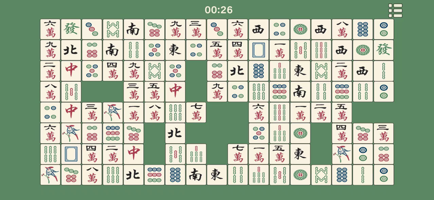 一款适合所有年龄段的麻将配对消除小游戏。 在安静的时光里慢慢思考,不急不躁,轻松消除每一对麻将。真心希望,它能成为您每天放松片刻的小陪伴。 【游戏特色】 清爽界面: 简洁明快,即开即玩,不被打扰。 全套麻将: 136张麻将全登场,就像在自家桌子上摆牌一样亲切自然。 大屏优化: 专为 iPad 大屏幕优化,每一张牌都大而清晰,不费眼,不点错。 省心省事: 没有内购,没有花哨的道具,专注于游戏本身。 【游戏玩法】 移动: 点击并拖动麻将,相连的麻将会作为一个整体移动。 消除: 移动后,当两个相同的麻将之间无阻挡时会自动消除。当三张麻将同时可被消除时,它们会被标记,需手动选择其中一对进行消除。 普通模式: 无时间限制,成功消除全部麻将即可获胜。 生存模式: 初始 100 分,分数会随时间逐渐减少。需在分数归零前消除所有麻将。消除可加分,连续消除还能获得连击奖励!