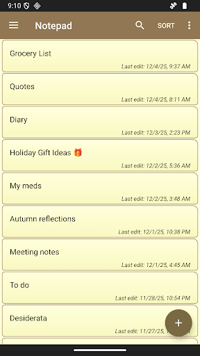 记事本是一款小巧快速的笔记应用程序,可用于制作笔记、备忘录或任何纯文本内容。特征:<br>* 大多数用户觉得易于使用的简单界面<br>* 笔记的长度或笔记的数量没有限制(当然手机的存储空间是有限制的)<br>* 创建和编辑文本注释<br>* 从txt文件中导入笔记,将笔记另存为txt文件<br>* 与其他应用分享笔记(例如通过电子邮件发送笔记)<br>* 笔记小部件允许快速创建或编辑笔记,像便利贴一样工作(将备忘录粘贴到主屏幕)<br>* 用于从备份文件(zip 文件)保存和加载笔记的备份功能<br>* 应用密码锁<br>* 颜色主题(包括深色主题)<br>* 笔记类别<br>* 自动笔记保存<br>* 撤消/重做笔记中的更改<br>* 背景中的线条,注释中的编号线条<br>* 技术支援<br>* 搜索功能,可以快速找到笔记中的文字<br>* 使用生物识别技术解锁应用程序(例如指纹或面部识别)<br><br>这可能是显而易见的,但应用程序中的笔记可以以多种方式使用。例如作为待办事项列表以提高工作效率。一种用于存储购物清单或安排一天的数字计划器。笔记可以放在主屏幕上作为提醒。每个任务都可以存储在一个单独的笔记中,或者可以使用一个大的待办事项笔记。<br><br>** 重要的 **<br>请记住在格式化手机或购买新手机之前备份笔记。自 1.7.0 版本以来,如果在设备和应用程序的设置中打开,该应用程序还将使用手机的设备副本。<br><br>* 为什么我建议不要将应用程序安装在 SD 卡上?<br>我按照官方建议阻止在 SD 卡上安装使用小部件的应用程序。这个应用程序使用小部件,就像笔记的图标一样,可以放在手机的主屏幕上(例如)。<br><br>如果您有任何其他问题,请通过电子邮件与我联系:notepad.free@outlook.com。<br><br>谢谢你。<br>阿雷克
