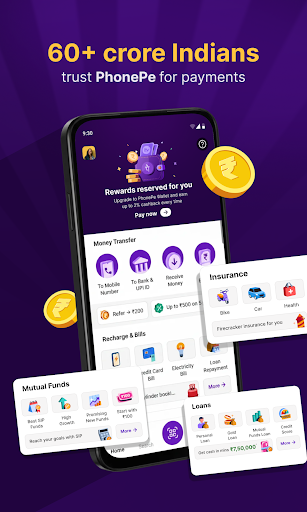 PhonePe 是一款支付应用程序,允许您使用 BHIM UPI、信用卡和借记卡或钱包为您的手机充值、支付所有水电费以及在您最喜欢的线下和在线商店进行即时付款。您还可以在 PhonePe 上投资共同基金并购买保险计划。在我们的应用程序上获取汽车和自行车保险。<br>在 PhonePe 上链接您的银行帐户并立即使用 BHIM UPI 转账! PhonePe应用程序安全可靠,满足您所有的支付、投资、共同基金、保险和银行业务需求,比网上银行好得多。<br><br><b>您可以在 PhonePe (Phonepay) 应用程序上执行的操作:</b><br><br><b>汇款、UPI 付款、银行转账</b><br>- 通过 BHIM UPI 进行转账<br>- 管理多个银行账户 – 检查账户余额,跨多个银行账户(如 SBI、HDFC、ICICI 和 140 多家银行)保存受益人。<br><br><b>在线支付</b><br>- 在 Flipkart、Amazon、Myntra 等各种购物网站上进行在线支付。<br>- 支付 Zomato、Swiggy 等在线食品订单的费用。<br>- 支付 Bigbasket 等在线杂货订单的费用。<br>- 通过 Makemytrip、Goibibo 等在线支付旅行预订费用。<br><br><b>离线支付</b><br>- 在 kirana、食品、药品等当地商店通过二维码扫描并付款。<br><br><b>使用 PhonePe 保险应用程序购买/续保保单</b><br><br><b>健康与定期人寿保险</b><br>- 比较/购买健康和定期人寿保险与每月保费<br>- 个人、老年人和家庭的保险<br><br><b>汽车和两轮车保险</b><br>- 浏览并获取印度最受欢迎的自行车和汽车保险<br>- 在 10 分钟内购买/更新您的汽车和自行车保险<br><br><b>其他保险</b><br>- PA 保险:确保自己免受事故和伤残的影响<br>- 旅行保险:为商务和休闲旅行购买国际旅行保险<br>- 商店保险:为您的商店提供火灾、盗窃、自然灾害和入室盗窃保险。<br><br><b>PhonePe 贷款</b><br><br>获得预先批准的个人贷款,准备通过无缝和数字贷款入职旅程支付到您的银行账户。<br><br>还款期:6 - 36 个月<br>最高年利率:30.39%<br><br>例子:<br>贷款金额: 1,00,000 卢比<br>任期:12个月<br>利率:年利率24.49%<br>手续费:2,500 卢比 (2.5%)<br>加工费 GST:450 卢比<br>总利息: 13,756.27 卢比<br>百代唱片:9,479.69 卢比<br>最高年利率:30.39%<br>支付金额: 97,050 卢比<br>还款总额: £1,13,756.27<br><br>我们提供来自印度一些最大的贷款机构的贷款 - Aditya Birla、Piramal、IDFC First、L&T Finance 和 Credit Saison India。<br><br><b>共同基金和投资应用程序</b><br>- 流动资金:获得比储蓄银行更高的回报 <br>- 节税基金:节省高达 46,800 卢比的税款并增加您的投资<br>- 超级基金:在我们应用程序的专家帮助下实现财务目标 <br>- 股票基金:根据风险偏好策划的高增长产品<br>- 债务基金:投资获得稳定回报,无锁定期<br>- 混合基金:实现增长与稳定的平衡 <br>- 购买或出售 24K 纯金:保证 24K 纯度,在我们的应用程序上节省黄金<br><br><b>为手机、DTH 充值</b><br>- 为 Jio、Vodafone、Airtel 等预付费手机号码充值。<br>- 为 DTH 充值,例如 Tata Sky、Airtel Direct、Sun Direct、Videocon 等。<br><br><b>账单支付</b><br>- 支付信用卡账单<br>- 支付固定电话账单<br>- 支付电费<br>- 支付水费<br>- 支付煤气费<br>- 支付宽带账单<br><br><b>购买 PhonePe 礼品卡</b><br>- 购买 PhonePe 礼品卡,以便在超过 10 万家领先的线下和线上商店以及 PhonePe 应用程序上轻松付款。<br><br><b>管理您的退款</b><br>- 在 PhonePe 上管理和跟踪您最喜欢的购物网站的退款。<br>欲了解更多详情,请访问 www.phonepe.com<br><br><b>应用程序的权限及原因</b><br>短信:验证注册电话号码<br>地点:NPCI 对 UPI 交易的要求<br>联系人:用于汇款的电话号码和充值的电话号码<br>摄像头:扫描二维码<br>存储:存储扫描的二维码<br>帐户:注册时预填充电子邮件 ID<br>通话:检测单卡与双卡并让用户选择<br>麦克风:进行KYC视频验证