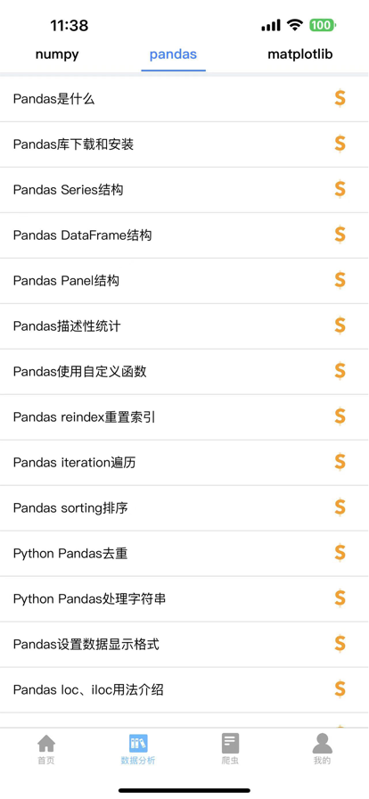 探索数据的无限魅力,畅享学习Python数据分析的终极平台!欢迎来到我们的学习Python数据分析教程app,这是一个全面、详实的学习资源,为你提供畅快深入的学习体验。无论你是初学者还是有经验的数据分析师,我们为你准备了一系列精心设计的教程和实例,帮助你快速掌握numpy、pandas、matplotlib等重要Python数据分析工具,以及强大的网页爬虫技术。 为什么选择我们的app?首先,我们为你提供了一份丰富的教程,从基础概念到高级技巧,逐步引导你掌握Python数据分析的精髓。你将学会如何使用numpy库进行数值计算和线性代数运算,如何使用pandas库进行数据清洗和处理,以及如何使用matplotlib库绘制令人惊叹的数据可视化图表。同时,我们还特别注重教授爬虫技术,帮助你获取互联网上的宝贵数据资源,并了解数据爬取的背后原理和技巧。 其次,我们的app界面简洁明快,易于操作,为你提供了一个舒适、无干扰的学习环境。你可以随时随地访问教程和学习材料,无论是在公交车上、咖啡厅里还是在家中。我们相信,只有让学习变得灵活便捷,你才能更好地掌握Python数据分析的核心技能。 除了教程,我们还为你提供了大量的实例和案例,帮助你将所学的理论知识应用到真实的数据分析问题中。你将从数据集的清洗与处理开始,通过numpy和pandas库进行数据预处理和特征工程,然后利用matplotlib库绘制各种图表,进行数据可视化展示。最后,我们引导你学习使用爬虫技术,从互联网中抓取数据资源,并将其整合到你的分析流程中。通过实践和实例,你将更加深入地理解数据分析的本质,并培养出解决复杂问题的能力。 最后,我们深知学习的重要性,因此我们竭尽全力为你提供优质的学习体验。我们不仅提供了教程和实例,还设立了交流平台,让你与其他学习者和专家互动,在学习过程中得到更多的帮助和反馈。此外,我们还定期更新教程内容,保证你学习的始终是最新、最前沿的数据分析技术。 现在就下载我们的学习Python数据分析教程app,让我们陪你踏上学习之旅,掌握Python数据分析的无限魅力!我们相信,你一定会爱上这个功能强大、内容丰富的app,它将成为你学习、实践和探索数据的最佳伙伴。无论你的目标是提升职业技能、解决实际问题还是追寻数据科学的奥秘,我们都将一路相伴,携手前行!快来加入我们吧,探索数据分析的无限可能! 欢迎来到Python数据分析app!我们非常荣幸地为您提供优质的数据分析服务。现在,我们为您推出了专属的内购永久会员计划,让您的数据分析之旅更加顺利和高效。 解锁专属特权:让数据分析更上一层楼 享受无限畅享: - 无限制访问数据分析视频教程,全方位提升您的技能水平。 - 无限畅玩数据分析实操项目,激发您的创造力和实践能力。 实用工具包尽在掌握: - 独家获取数据分析实用工具包,助您快速处理和分析数据。 - 全新高级算法库,解锁更多数据处理和机器学习的可能性。 焕发数据的魅力: - 掌握最新的数据分析技术和趋势,打造专业级的数据可视化展示。 - 定制化报告生成工具,让您的数据分析成果更具说服力和洞察力。 个性化学习路线: - 定制化学习计划,根据您的需求和兴趣为您制定个性化的学习路线。 - 专属导师指导,解答疑惑,为您提供专业、贴心的学习支持。 购买永久会员,为您的数据分析之旅加上一把火箭!立即体验,解锁无限可能!让数据为您驱动,成就您的数据分析梦想!