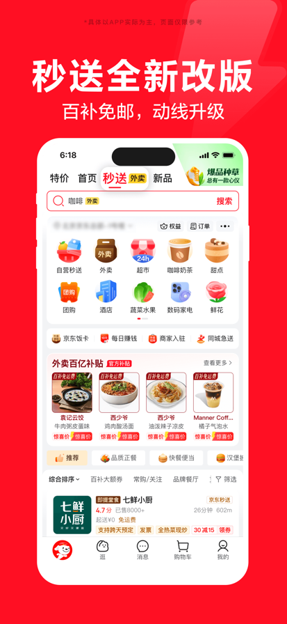 【京东】—— 又好又便宜 京东APP是国内领先的综合电商平台,整合全品类购物、外卖点餐及生活服务于一体,致力于为消费者提供“又好又便宜”的一站式消费体验。 【平台优势】 1. 正品好货,品类齐全 汇聚超1000万个自营商品及百万优质商家,覆盖电脑数码、手机通讯、超市好物、家电家居、服饰美妆、消费品、汽车、生活服务等全品类,满足消费者吃喝玩乐全方位需求。 2. 价格实惠,多重保障 ● 百亿补贴:大牌限时补贴,全场包邮。 ● 京喜自营: 超值低价好货,工厂直发,京东快递包邮直达消费者。 ● 京东秒杀:正品限时秒,折扣享不停。 3. 售后无忧,服务护航 ● 极速配送:省心省时,送货上门,提供211限时达、次日达、极速达、夜间配等多种高效配送服务,闪电到货。京东秒送,好物立享,最快9分钟送到手。 ● 售后无忧:闪电退款,价格保护,降价退差,上门换新。客服响应迅速,实在服务,时刻守护 【平台特色】 1. 品质外卖,上京东 京东外卖于2025年3月1日正式上线,致力于成为让消费者放心、让优质商家经营更好、让骑手更有保障的负责任的品质外卖平台。 2、订酒店,上京东 京东酒店,又好又便宜。首住特惠最高立减130元。 3. 重磅新品,抢先体验 京东新品,频道每日上新,汇聚更新更潮的大牌尖货,更有天天1元抽重磅新品。 4. PLUS会员,省心又省钱 京东PLUS,权益重磅升级,7大生活服务随心兑。 5. 看直播,享福利 京东直播,领取专享折扣,专享红包抢不停。 【更多服务,联系我们】 喜欢又好又便宜的京东,请给我们满分好评; 如有建议请及时反馈,我们一起优化更好的购物流程和体验; 可通过以下方式联系我们: 京东客服热线:950618