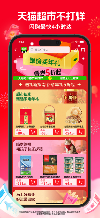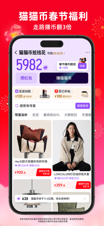 天猫(原手机天猫)是阿里巴巴集团旗下的购物APP。海量官方旗舰店正品保障,为您的品质购物保驾护航。天猫致力于满足消费者对品牌产品和优质商品的购物体验需求。在为消费者提供货真价实的产品的同时,持续创新售前服务并着力提升售后服务,努力打造成线上购物的品质地标,成为越来越多的消费者喜欢并值得信赖的网购平台。 【特色频道】 超神卡:淘宝铂金以上会员专享,每月必免1单!折上再享9.6折!每100元最高再返8元! 猫猫币:天猫下单即返猫猫币,海量商品下单可用猫猫币抵扣,折后再补最高50%,可叠红包叠消费券 多买多返:每单返1%,超神卡用户专享返2% 大牌闪购:爆款低价,整点抢红包 百亿补贴:大牌全网低价,限时买了就返红包 天猫超市:自营商品一次买齐送上门,致力于满足广大消费者全场景生活需求 天猫国际:全球好货新发现,为中国消费者提供全球的进口好物、直达海外生活方式 *具体以商品详情页展示为准 有任何问题和建议,您可以通过以下方式联系我们: 微博:@天猫APP 消费者热线:9510211 手机天猫客户端:我-设置-意见反馈 同样,您给的反馈意见,我们会加速优化改进!