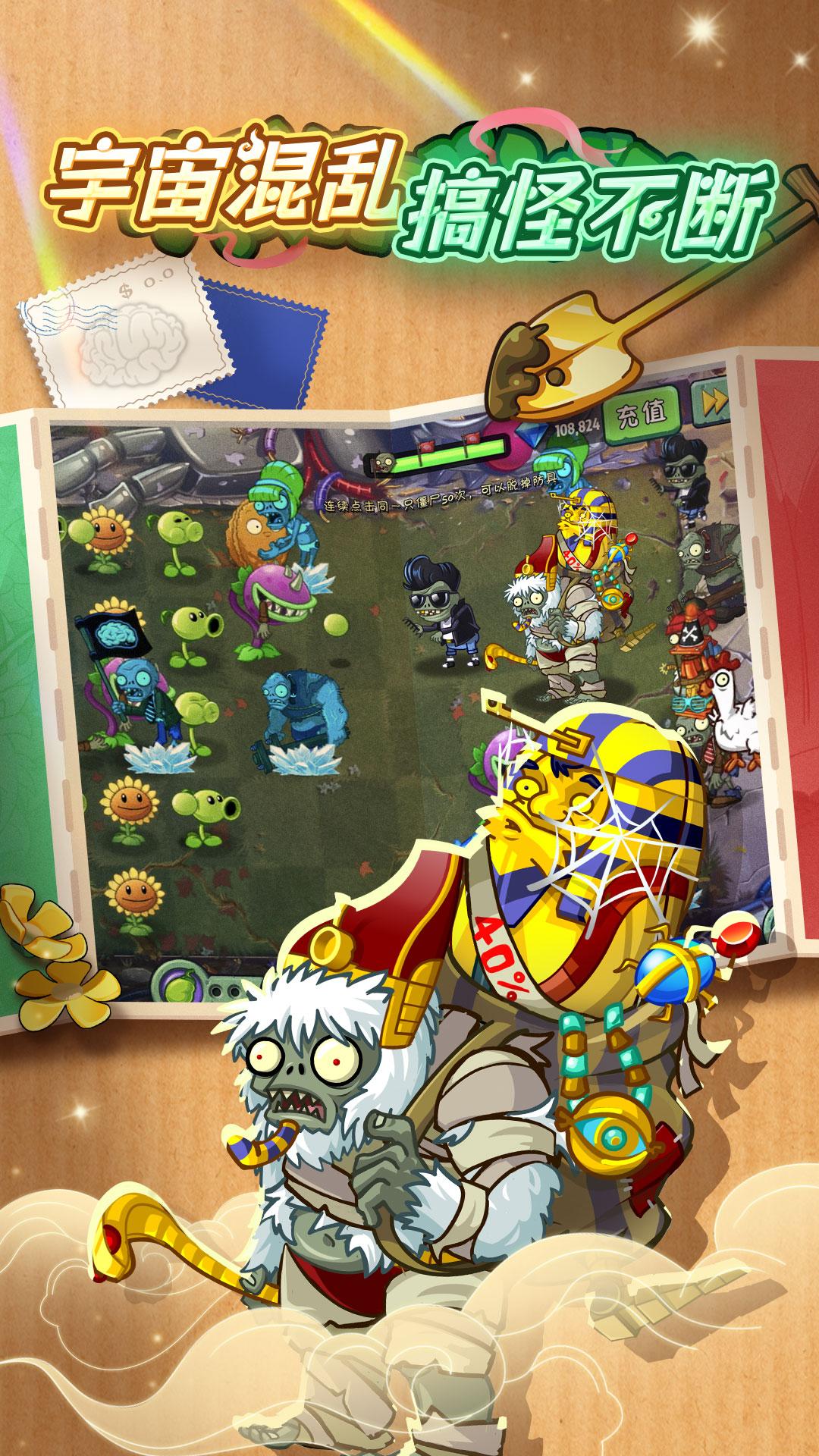 歪比巴卜!PVZ2时空之旅也太有意思了吧!<br>作为经典塔防续作,一场由玉米卷引发的时空穿越,让你坐着潘妮时光机到处“旅行”,上一秒刚揍完海盗僵尸,下一秒就和牛仔僵尸对决,功夫世界称霸、冰河时期抗寒,玩法嗨到停不下来!<br>近300款植物任你解锁,各有绝活。能量豆大招、神器加持,虐僵更解压!还有植物养成、无尽冲榜、DIY庭院等玩法,闲下来就和戴夫组队打僵尸,记得提防调皮的僵尸鸡哦,咯咯哒~拿好这个花盆,祝你好运!随时随地,快乐拉满!