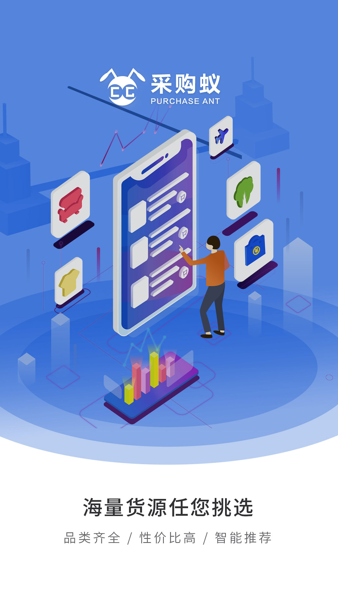采购蚁--采购更便宜,全国领先的采购与供应链服务平台。百万采购用户进货,批发的首选平台。批发,定制,找工厂,找工业品就上采购蚁。采购蚁旨在通过大数据,人工智能,云计算等先进技术智能对接采购商(买方)和供货商(卖方)的采购和销售的核心需求。 采购蚁包含全品类的商品采购信息,包含60余个行业的采购信息。是一站式采购的首选平台。无论从服装箱包、日用百货、数码电器、到农产品、工业平台进货采购应有尽有。是百万采购用户的明智选择。采购蚁具体包含的采购类别有:服装采购、配饰采购、箱包采购、数码采购、电器采购、照明采购、工业品采购、工艺礼品采购、婚庆用品采购、饰品采购、五金采购、日用百货采购、雨具采购、电子电器采购、玩具采购、化妆品采购、办公文体采购、袜业采购、汽车用品采购、钟表采购、线带采购、针棉采购、纺织品采购、服装采购、箱包皮具采购,母婴用品采购、3C数码采购、家用电器采购、农产品采购、家装建材采购等所有品类的商品采购。 采购蚁比较于其它APP如:阿里巴巴、1688、服装批发、义采宝、进货宝等有着自己的优势。采购蚁,品类齐全。价格更便宜。优选商品。品质有保障。