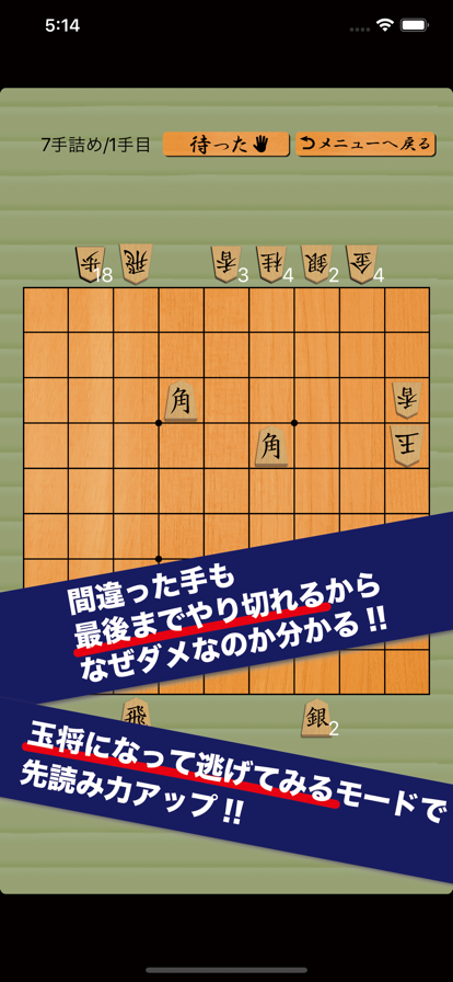 世の詰め将棋アプリに不満を覚えた詰め将棋好きが作ったアプリです。 ・問題数は5万作以上 世のアプリは問題数が少なすぎる! 同じ問題を2回以上やろうとは思えません。 本アプリでは、1日50問やっても3年は楽しめる作品数を誇ります。 また、iOSのランキング機能によって、トッププレイヤーの解答済み作品数を把握することで、 全問クリア済みのプレイヤーの出現に合わせて、作品数追加のUpdateを予定しています。 ・正解手筋以外でも、詰み手数まで遊べるように 詰め将棋アプリの中には、正解手筋以外の手を打とうとすると、 即座にゲームオーバーとして、終了してしまうアプリが存在します。 中には、複数詰み筋があるのに、正解として実装された手以外だと認められないアプリも。 本アプリでは、オリジナルAI「逃げ玉3号」が、あらゆる手に対して、最適な玉の逃走ルートを打ってくれるため、 即座にゲームオーバーにならず、 その手が何故ダメだったのかがわかるようになっています。 ・「玉になって逃げてみる」モード搭載 「あれ? これ、玉が向こうに逃げたら、詰まないんじゃ……?」 詰め将棋をやってると、玉側が正解手筋以外で逃げたときに、 詰まないように見えることがあります。 まぁ、大抵ただの見落としなんですが、その見落とした手を教えて欲しい。 そんな不満を解消すべく、「玉になって逃げてみる」モードを搭載しました。 オリジナルAI「詰め玉2号」が、玉側のあらゆる手に対して、最適な詰み筋を打ってくれるので、 正解手筋以外の逃げ筋で、どうやったら詰むのかがわかるようになっています。 なお、クリア済みの問題でしか選べないので、ズルはできませんよ。