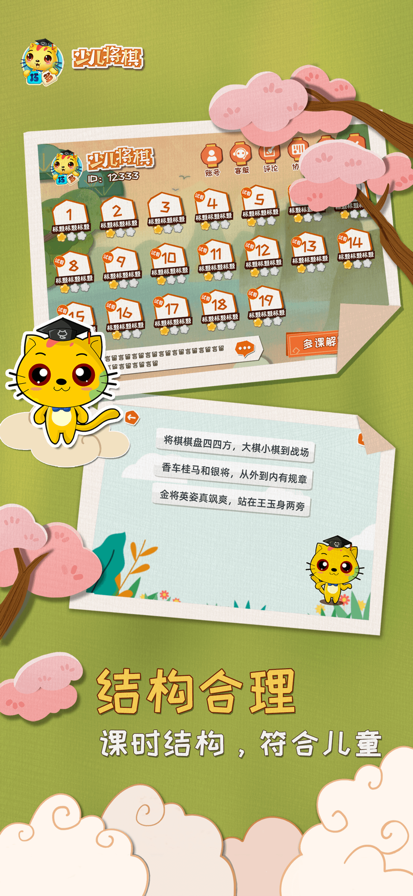 《少儿将棋教学合集》是成都迈瑞科科技有限公司旗下“巧多棋院”项目打造的又一款少儿动画学棋软件,该软件遵循儿童认知和学习的特点,在知识点的选择和编排上完全按照孩子的思维习惯设计,通过角色扮演互动演绎和动画的结合,使得枯燥的知识变得直观易懂。而且通过学习该软件,在了解不同文化的同时,还能从下棋中体会一些为人处世的道理。也提升了孩子的专注力、逻辑思维能力和抗挫折能力等。 课件特点: 1、角色互动,动画授课 教学内容采用人物互动方式来展开,生活化的对话结合动画的表达形式,亲切自然,使得抽象枯燥的知识润物细无声的被孩子不知不觉就接受和了解,让孩子主动思考的同时又对后面的学习充满好奇,时刻保证孩子的学习兴趣。 2、简单易懂,循序渐进 结合儿童的认知和学习特点,自主研发并编排了一套适合孩子学习的课程结构,让孩子快乐的学习并掌握知识点。 3、边学边想,课后练习 每课结束配合课后练习,对所学知识进行复习和巩固。