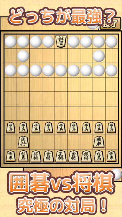 A game application that allows you to actually move Go vs Shogi that is the subject of a movie! Which is stronger between go and shogi! Is it? Let's verify the ending of the chaotic battle with yourself! ※ It is a neta gate to the last. Please note. ▼ Shogi Rules - You can take a stone stone. - You can also take on ally stones. - It can not move to the dead ground. ▼ Go stone rule - If you surround a shogi piece with a go stone you can take it. - However, if you enclose your shogi piece it will be taken by the opponent. - You can strike a free mass on the board. Recommended for ▼ - Those wishing to see videos and actually examine other pieces - Those who wanted to watch videos and actually play with friends - Shogi beginners and beginners interested in joogu shogi including beginners - Those who would like to point the shogi game completely free - It seemed the first time to play shogi inspired by Fujii Quadruple but so good as it is real * Computer versus station is currently under construction.