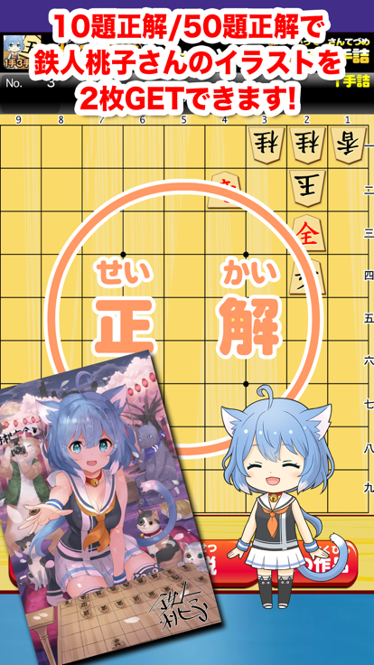 電王トーナメント27位! 本アプリは初心者、とくに女性やこども向けに作られており、だれでも簡単に将棋ができる・勝てるようになっています。 ハム将棋に既に勝てる方にはあまり面白くないかもしれませんが、その方は「タイムアタックランキング」に挑戦してみましょう。 ただし、やりすぎには注意です。やりすぎると棋力向上になりません。 将棋のルールから基本的な勝ち方の解説も行っており、漢字にはルビが振ってありますので、将棋をやってみたいというお子様に是非すすめてください。 また、知り合いを将棋の世界に引き込みたい場合にも本アプリを紹介していただければ幸いです。 --操作方法-- 「対局開始」をタッチするとねことの対局がはじまります。 先手・後手は自動的に決定されます。ヒントが3つ表示されますが、そのうちの1つが正解手となっています。 どれが正しい手なのか考えながら指していきましょう。ヒントをタッチするとどの駒をどこへ動かすかが表示されます。 対局終了後に「棋譜を見る」を選択すると、感想戦に入ります。対局中のヒントの正解手をオススメの手として表示します。 --設定-- 「設定」からハンデをもらったり、ヒントの出し方を変更することができます。 もし勝てなかった場合は「ハンデもらう」から二枚落ちにしてみましょう。ねこの飛・角がない状態で対局が開始されます。 またヒント1/2にすると、ヒント表示が2つになりますので、正解手が2つに1つとなります。 --その他-- ルールや心得にて将棋の基本的なことを記載しております。将棋を知らなくてもプレイできます。 もし将棋が初見であり、ヒント3つの状態で勝てたら素晴らしいですね。小学生なら天才です。 後手になっても譜号は便宜上先後逆になります。 千里の道も一歩から。ここから将棋をはじめてみましょう! --将棋の反則-- 二歩を打ってはいけない 王手放置をしてはいけない 打歩詰をしてはいけない 行きどころのない駒を打つ・移動をしてはいけない。