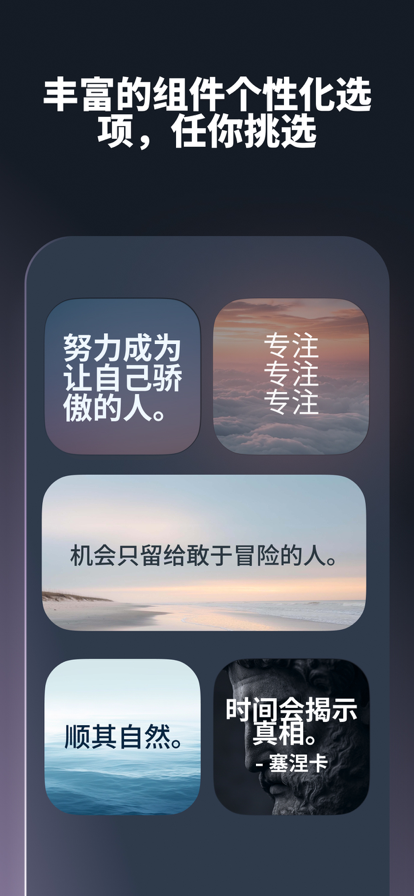 无论你现在正身处逆境、需要一点完成工作的动力,或者还是希望在社交媒体上分享励志金句,Motivation都能满足你的需求。 积极阳光的励志金句是促进心智成长最简单、最有效的工具之一。每天一醒来就将积极的思想在心中“置顶”,即使是在最沮丧的日子里、最需要鼓励的时候也能随时为自己打气。 现在,从iOS 14开始,你甚至无需使用Motivation App就可以培养积极的思维!只需在主屏幕上安装小组件,然后从应用程序进行自定义即可。小组件数量不限,你想添加多少个都可以! 自定义金句的设计格式,将每日金句分享给好友,或将金句用于Instagram图片或手机壁纸。 本应用程序包含广泛多样的主题,例如自尊、人际关系和减压;亦提供一系列精心设计的格式供你选择——我们还会定期更新哦! + 阅读不计其数的金句 + 查找励志书籍 + 分享你的金句 + 设置全天候励志金句提醒 + 保存你最喜欢的金句 + 更改字体和颜色 + 按类别过滤金句 + 设置主屏幕Motivation小组件 从健身到爱情再到家庭,Motivation金句应有尽有!浏览我们按类别显示的、不计其数的金句: —工作金句 —爱情金句 —运动健身 —抵抗抑郁 —提升自尊和自信 —走出分手的伤痛 —人生经验 —给运动员和教练的运动金句 —商业、金钱、成功和事业 —活在当下,积极思考 —女性金句 —天才哲思 —感恩金句 —快乐感悟 —电影金句 —圣经经文 —还有更多,精彩无限! Motivation Premium会员订阅可实现: + 移除广告 + 解锁所有主题和类别 + 设置背景照片 + 获取的提醒不受数量限制 + 搜索金句 如要访问Motivation Premium内容和功能,你可以选择终身、包月或包年自动续订订阅。这会是一项重复性交易,将在你确认购买后从你的iTunes账户中扣除订阅款项;而且将自动续订,除非你在订阅结束前至少24小时取消订阅。当前订阅期结束前24小时内,我们将向你收取相同金额的续订费用。如要管理订阅并关闭自动续订功能,请在购买后前往你的iTunes账户设置。 隐私政策 http://monkeytaps.net/privacypolicy.htm 使用条款 http://monkeytaps.net/termsofservice.htm