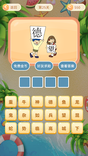 游戏特色<br>1、多样的关卡设计给玩家带来了更加趣味的掌上挑战体验,每一位的玩家都是可以放心的体验的;<br><br>2、精致的水墨画的风格给玩家打造了舒适的游戏体验,玩家是可以在游戏中去尽情的体验的;<br><br>3、超多丰富的题目设计,还有不同的任务要求打造了多元化的游戏体验,灵活的去发挥你的智慧;<br><br>4、简单容易上手的操作方式玩家是可以第一时间去享受的,稍微动下指尖就可以感受到游戏的乐趣了;<br><br>游戏亮点<br>1、不断的更新很多的关卡可以让玩家实时感受精彩的挑战,真正让每位玩家去自由的感受其中魅力;<br><br>2、全新的游戏版本搭配多样的趣味给玩家更加优质的游戏体验,随时随地的轻松享受文字带来的魅力;<br><br>3、这款游戏是没有体力限制的,玩家是可以去随时的畅玩的,保证玩家可以自由的畅享游戏的快感;<br><br>4、趣味优质的游戏体验给予玩家更加轻松的游戏体验,丰富精彩的内容可以让玩家在手机上获得乐趣;
