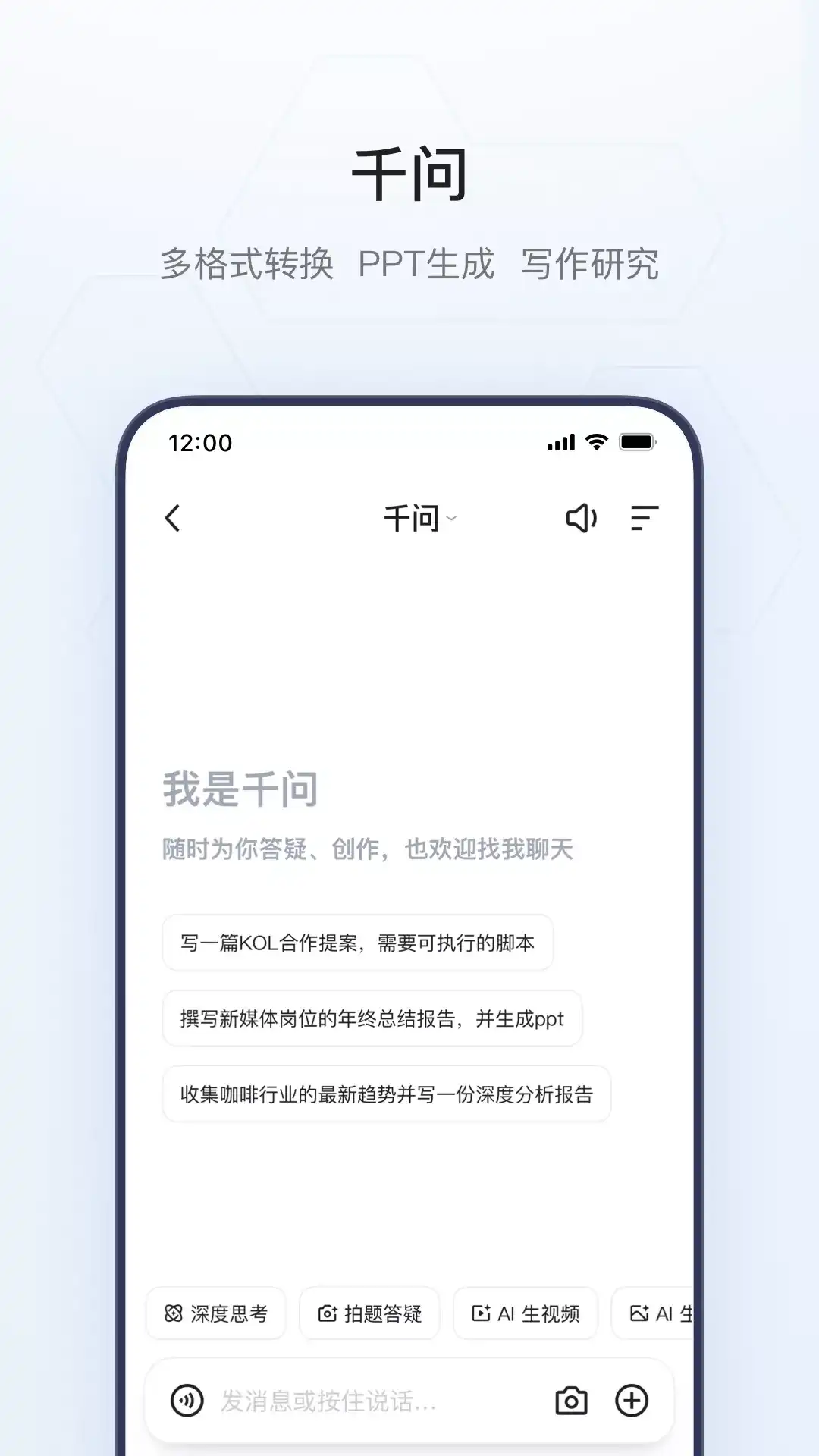 夸克是AI旗舰应用,使用阿里最强Qwen大模型,推理、理解、执行能力强大。 夸克提供搜索、助手与云端服务,无论你在学习、办公、创作或生活中遇到什么问题,夸克都能即时响应、深入分析,并给出清晰、专业的解决方案,为你带来高效、全面、可信赖的 AI 体验。 【千问助手】 AI助手,使用Qwen新模型,为你提供专业、高效的高质量解答。它基于优质知识源与强大的推理能力,在复杂场景下也能输出权威、准确的答案。 先进模型:多模型可选,既适合日常问答写作,也适合科研级推理、公式计算等复杂的多步骤决策场景。 深度搜索:具备强大的推理与执行能力,擅长处理复杂逻辑与多步骤决策。 文采出众:从公文、论文到社交媒体文案,支持全体裁、多场景写作。多种文风,用语得体。 表达清晰:回复结构化呈现,含图表与分点描述,复杂信息一目了然。 多模理解:文字、语音、拍照都能对话,还可以上传文档、提炼要点、转换格式。 【AI搜索】 高效检索: 查资料、看资讯、找答案,夸克帮你快速找到最合适的结果。 智能理解: 搜索更懂你,自动理解意图,答案更贴近问题。 AI 总结: 即时生成摘要,汇总重点信息,让复杂问题一眼看懂。 结果优化: 搜索结果更直观、更智能,节省时间更省心。 纯净体验: 界面简洁无广告,信息更纯净,让搜索回归本质。 【AI生产力工具】 AI写作:全体裁写作,写方案、报告、文案,都能一句话生成,逻辑流畅自然。 拍题批改:拍题答疑,难题讲解详实准确,学习效率倍增。 夸克PPT:输入主题即可生成专业演示文档,自动排版与结构优化。 夸克扫描王:拍照识别文字与表格,自动提取、整理、总结。 夸克翻译:多语言即时互译与语义理解,阅读外文网页更顺畅。 【夸克小说】 海量书库: 百万级正版藏书,都市爽文、言情穿越、悬疑探案、玄幻修仙,应有尽有。 极致阅读: 排版清爽、操作便捷,沉浸阅读更舒适。 AI 听书: 多音色自然朗读,声音流畅真实,沉浸体验更生动。 【夸克网盘】 超大空间:6T超大空间,照片、文件安心存储。 多端同步:手机电脑随时看。 超级播放器:高清画质、AI字幕,沉浸式观影体验。 如果你在使用产品过程中遇到了任何问题或需要我们协助,请通过以下方式联系我们,我们将尽快处理! 反馈方式: -软件反馈:设置->意见反馈 -邮件反馈:kksupport@service.alibaba.com -官方网站:http://www.quark.cn