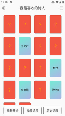【软件介绍】 翻卡片抽签app是一个好用给力的翻卡片抽签工具,它利用翻牌系统来决定随机抽取人员的功能,可以用在一些活动和办公场所中。 和我们想象的一样,只要点击卡片才能知道后面的内容或名字。 卡片未被翻开时,此时只能看到卡片的背面,卡片正面的内容被隐藏;点击卡片的背面,卡片自动翻开,此时显示卡片正面的内容。卡片的背面是看不到任何内容的,只有翻过来看正面才能了解卡片信息。 【功能一览】 卡片正面的内容和卡片的数量都可以简单的人为设定,卡片的背面可以自己选择和定义背景颜色。 翻开一次后就可以立即重置洗牌,不可能作弊,能保证公平公正。 【软件特色】 玩真心话大冒险吗?用它来翻牌抽签是最合适不过了,使用方法很简单。 翻卡片抽签主要适用于一些需要挑选随机人员的场景,比如要选人表演节目或者进行抽签活动等等,随机性极大。 当你在各个选择中犹豫不决的时候,就可以使用翻卡片抽签app,帮助用户快速做出选择,也可以和多个用户一起玩,是聚会玩乐必不可少的软件哦,需要的朋友快来下载吧。