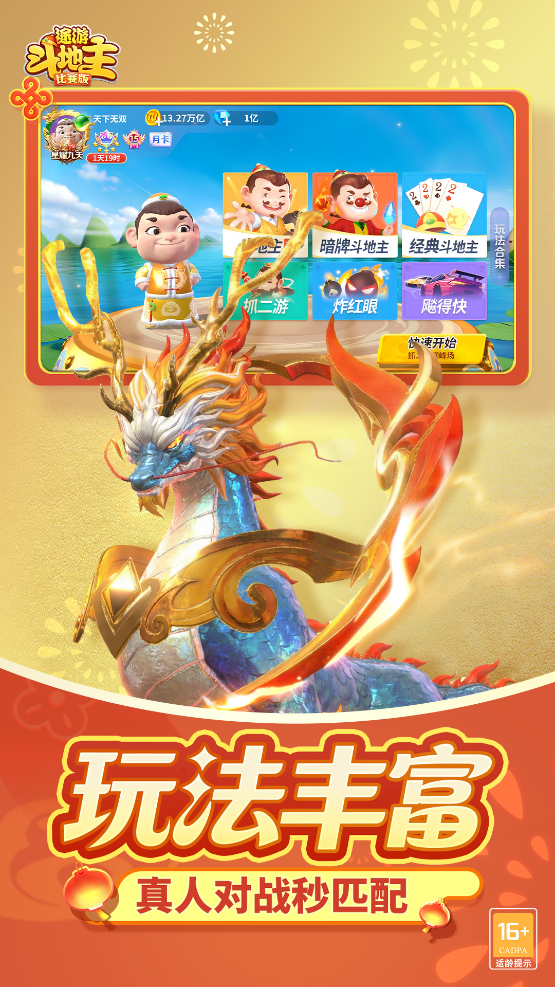 视觉体验升级,创新玩法暗牌斗地主,对比PK刺激升级!全新3D角色带给你与众不同的体验!<br>在这里,全国各地真人牌友实时对战,发牌公平,牌局专业,斗得过瘾,赢得畅快。<br>【主播力荐】<br>连炸、炸瞪眼、飚得快、百花七星等网红爆款直播霸屏,爽快解压!<br>【创新玩法】<br>跑得快升级飚得快,创新的赛事模式带来更多的竞技性、刺激感和趣味性!<br>【主播对战】<br>狙击主播、水友赛等主播互动玩法应有尽有,快来跟主播一决高下吧!<br>【玩法多样】<br>经典斗地主、不洗牌、超掼蛋、麻将、残局等多种玩法精彩纷呈,百玩不厌!<br>【公平竞技】 <br>途游斗地主绿色无广告,玩家素质高,真人秒匹配,文明打牌,越斗越开心!