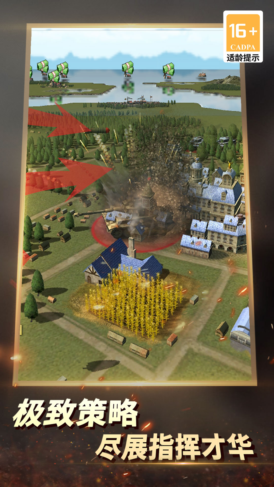 跨越2000年,超过150个重大历史战役 6个时代的世界征服,100多名伟大的将领 22个世界文明,90个军事单位 ------------------【帝国模式】-----------------指挥官阁下!你即将建立一个伟大的帝国 你的帝国将经历6个时代,跨越2000年的历史 随着帝国版图的扩大,会有各种任务等待探索 攻占敌军城市,收集资源建设都市 在酒馆中雇佣将领,追求各国美丽的公主 在市场中贸易,防守帝国的边境,击退来犯的敌军将领 收集各种物资,将帝国发展到新的时代 ------------------【战役模式】----------------- 150个伟大的战役,经历『古典时代 中世纪 帝王时代 航海时代 火药时代 工业时代』 重现亚历山大,成吉思汗,凯撒,巴巴罗萨等伟大君王的征服之路 ------------------【征服世界】----------------- 在六大时代中征服世界 行使你的权力发展经济,对外战争或者与他国外交 在征服的道路上会遇到各种对你国家有影响的事件 升级时代,招募各种军队和将领 各国公主拥有不同的天赋,她们将促进帝国的发展 展示你的外交技巧,结盟、宣战或者保持中立