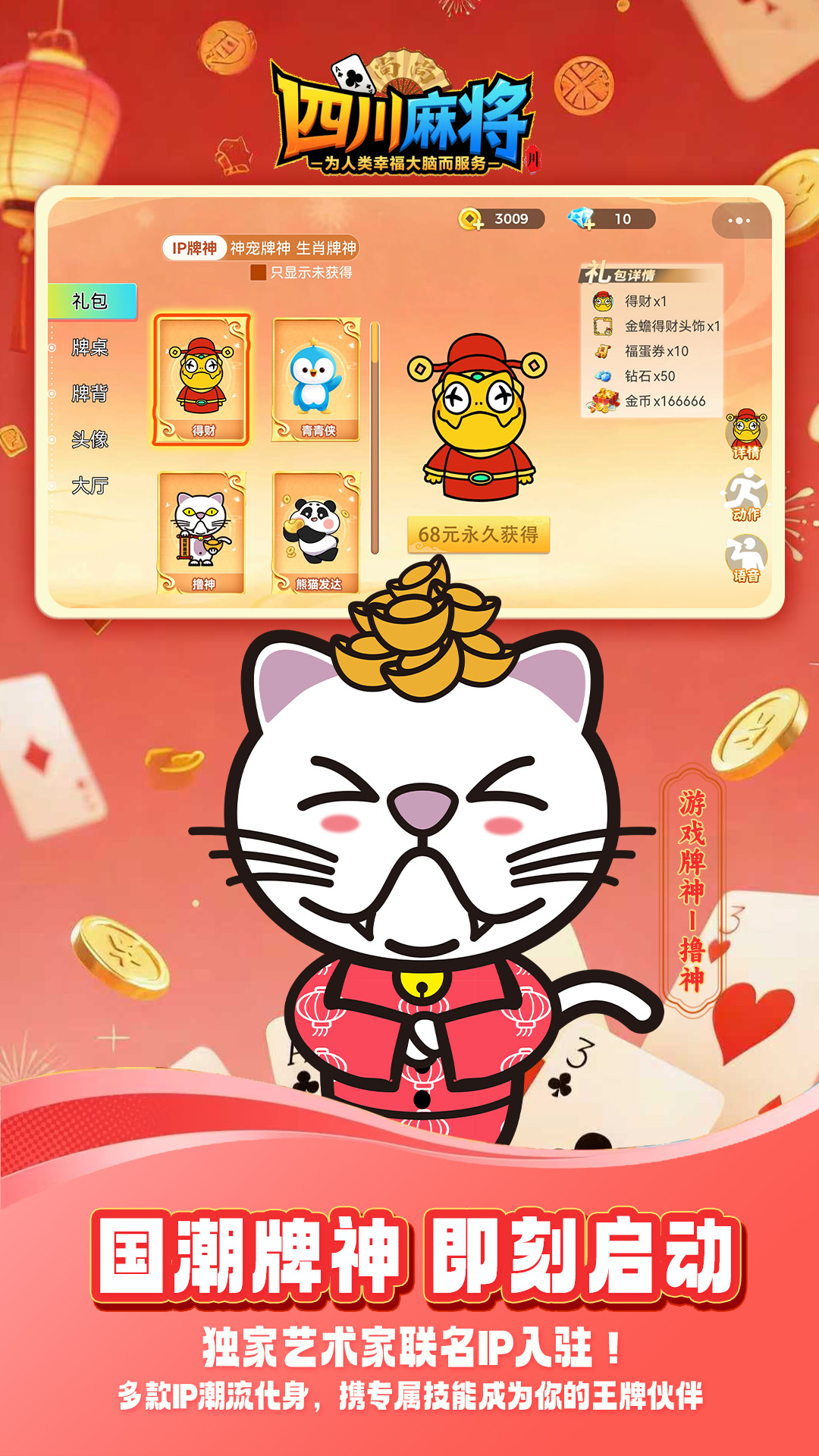 《尚尚四川麻将》开启国潮棋牌新纪元,一款潮流IP助阵的全能棋牌竞技场!全国玩法一网打尽,艺术牌神伴你智胜全场!<br>尚尚四川麻将集结全国爆款棋牌玩法,融入潮流艺术灵魂!不仅是一款游戏,更是一个汇聚地方麻将、经典扑克、智慧象棋的多元竞技乐园。我们携手数百位知名艺术家,打造了“孔爷爷”、“通顺关羽”、“鸿发财神”、“熊猫发达”、“魔鬼猫”、“YOLO”、”夏萌猫”等40款超人气IP牌神,每位牌神都拥有专属技能,陪伴你的每一局对决,让传统棋牌焕发全新潮玩生命力!<br><br>〖潮流IP牌神,伴战有灵〗<br>艺术家联盟:孔爷爷、唐妞、财神、关羽、魔鬼猫、功夫鸡、阿槑等众多知名潮流IP化身游戏“牌神”,绝非普通角色!每个形象均由艺术家深度设计,拥有独特背景与技能,并且每一个牌神都有独有的牌桌、大厅、头像框等道具为你的游戏注入潮流灵魂与惊喜助力。技能加持,趣战非凡:牌神不仅是陪伴,更能激活专属技能,让对局策略丰富多变,胜负更有乐趣,打造专属你的幸运竞技时刻。<br><br>〖全国玩法大全,一战通达〗<br>深耕四川,麻将大全:专业还原万州麻将、幺鸡麻将、眉山麻将、雅安麻将、宜宾麻将、德阳麻将等各地特色玩法,无论你来自何方,都能找到家乡的牌桌味道。<br>爆款扑克,应有尽有:除了经典斗地主、掼蛋,跑得快、推倒胡等热门玩法,满足所有牌友的喜好更有象棋等智力竞技同样精彩。<br><br>〖公平竞技赛场,实力为王〗<br>采用专业防作弊机制,确保牌局公平。智能匹配系统,秒速对接实力相当的对手,让每一局较量都纯粹靠技术、拼谋略。<br>从日常娱乐到专业赛事,提供阶梯式竞技体验。无论你是休闲玩家还是竞技高手,都能找到属于自己的舞台。<br><br>〖持续更新,海量福利〗<br>游戏持续更新,不断推出新玩法、新活动、新IP牌神。登录有礼、对局有奖、赛事有金,海量福利狂送不停,助力你的畅玩之路。