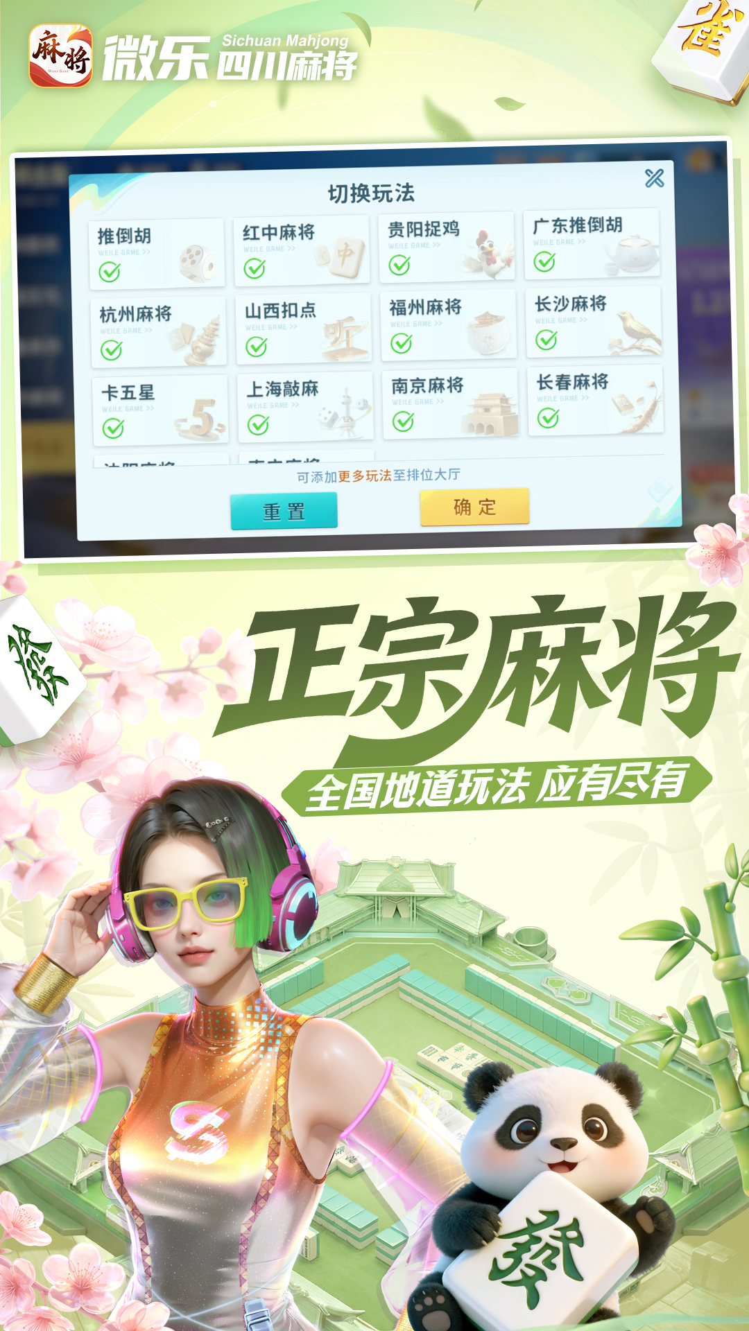 《微乐四川麻将》是一款汇集各地正宗经典麻将玩法的手游,热血排位公平竞技,特色爆火娱乐玩法,刺激翻倍!赛季福利不断,凭实力获得权威麻将考级认证,畅享麻将竞技比拼的魅力!更有个性化职业角色增添牌桌养成乐趣,「乡村爱情故事」联动狂欢不停!<br><br>游戏特色:<br>【正宗玩法,应有尽有】<br>血战到底、红中麻将、杭州麻将、贵阳捉鸡....各地正宗地方玩法合集,款款地道等你来!<br><br>【爆火娱乐,刺激翻倍】<br>多种创新娱乐玩法,花语红颜、花语乾坤、红中血流爆爽胡牌,番上加番!<br><br>【赛季排位,竞技比拼】<br>赛季排位争霸,热血竞技公平比拼,更有海量福利上线即得,欢迎各路雀神来秀牌技!<br><br>【麻将考级,权威认证】<br>实战即得「IMSA国际麻将联盟认证证书」,证书编码全球可查,有实力就来战!<br><br>【个性角色,随心选择】<br>元气主播、瑜伽教练、神秘调酒师......全新角色系统闪亮登场,赢牌更有范儿!<br><br>【正版联动,乡爱聚川麻】<br>象牙山棋牌馆开业了!「乡村爱情故事」刘能、广坤等角色空降牌桌,伴老铁你血战到底!