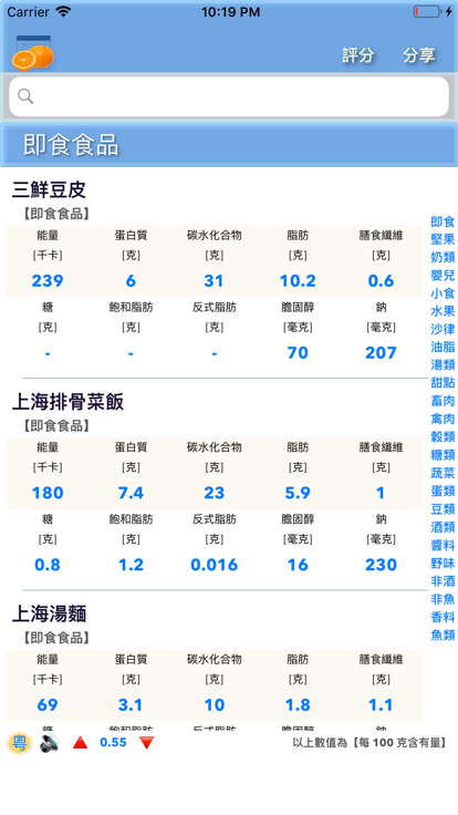 智食物是包含各种食物信息的大集合,是一款简单易用的查看食物信息的APP,可以查看包括不限于丰富可靠的营养素相关知识、食物能量、食物成分信息、食物碳水化合物信息、食物维生素信息、食物矿物质信息等等。形象的图表全面展示食材信息,分门别类归档食材让你更方便更容易找到所需食材,所有食物数据均来源于互联网和作者以及用户的努力搜集/翻译。如果本软件侵犯到您的权益或名誉请及时联系我们,我们会第一时间处理并及时公布处理结果。本软件可以完全离线完全使用,联网时刷新会同步最新食物数据,所有同步的食物数据均支持完全离线阅读。 【1】食物营养含量 【2】食物矿物质含量 【3】食物维生素含量 【4】食物微量元素含量 【5】食物库含量信息 【7】食谱/菜谱信息 【8】食物营养学信息 【9】食物嘌呤信息 【10】趣味猜灯谜 【11】完全离线同步机制,没有网络也可以使用