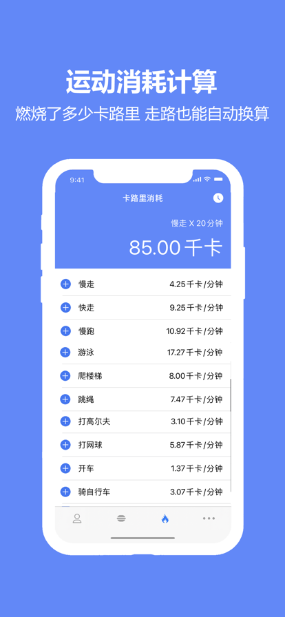 减肥计算器-减肥减脂必备助手app 了解你的BMI/体脂率/基础代谢/卡路里消耗 食物热量查询计算及记录,运动热量消耗计算及记录。 支持数千种食物热量查询计算,平时点个外卖螺狮粉喝杯奶茶都能查到热量并记录下来 支持数百种运动的热量消耗查询计算,平时走路步数我们已经自动帮你换算成卡路里消耗 Weight Loss Counter Learn your body index:BMI/BFP/BM/Ideal Body Weight Diet Calories Counter & Diet Record Exercise Calories Burned & Exercise Record Privacy Policy for Healthkit: This app will ask you to access to your Apple Health.You can close it on Settings>Privacy Policy>Health. This app needs to connect your Aplle Health by Healthkit.It will import your body weight/height/birthday/sex/your steps data from Apple Health after you connected successfully.