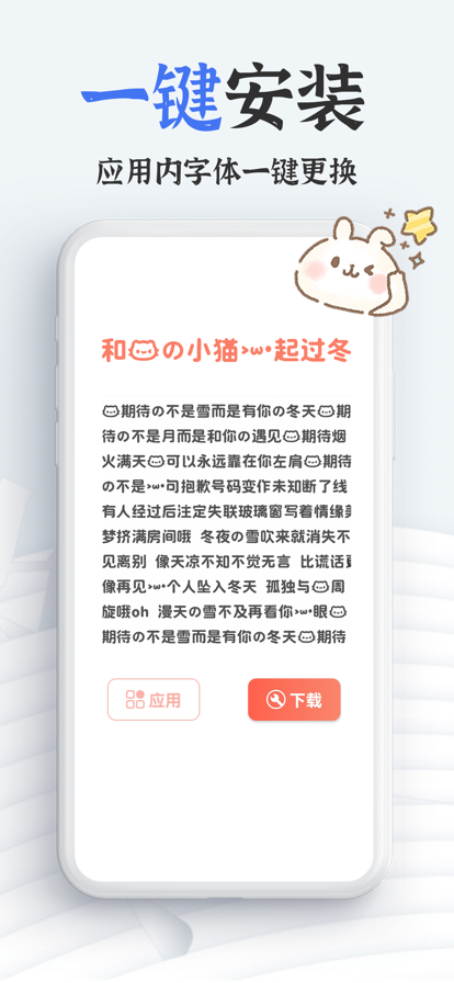 个性手机字体 App —— 打造您的专属手机风格! 用全新字体、壁纸、主题图标与键盘风格,打造独属于你的个性美学!轻松点亮你的聊天和日常使用场景。 无论是聊天、笔记还是社交分享,都能展现独一无二的文字魅力。操作简单,一键下载安装,并完美适配苹果手机系统,帮助您打造专属的字体风格! 小提示:安装成功后,您可在 iOS “设置” > “通用” > “字体” 中查看字体,仅支持 iOS 13 及以上系统。 请注意:若删除本 App,将会同时移除通过本 App 安装的字体。 主要功能: 【字体大全】:精心收录海量中英文字体,风格多样,轻松安装与切换。支持系统级字体替换,让你的手机焕然一新。。 【潮流壁纸】:热门、创意、趣味壁纸,解锁多种风格主题,让锁屏和桌面更出彩。 【主题图标】:多套图标主题一键应用,轻松打造高颜值桌面布局。 【炫酷键盘】:丰富的键盘样式与特效可选,输入体验更有趣,聊天更出彩。 【DIY 键盘】:自由设计键盘背景、按键样式、字体与动画,打造属于你的专属输入风格。 【英文字体】:在键盘中直接输入独特的英文字体,让每一句话都与众不同。 订阅说明: - 该订阅包含周度套餐,月度套餐、季度套餐、半年套餐。 - 订阅后在您确认购买时通过iTunes账户收取。订阅将会自动续订,除非在当前订阅期至少提前24小时取消订阅服务。您的账户将会在当前订阅期前24小时前内按照您的套餐扣除订阅费用。购买后,您可随时在Apple ID账户设置中管理或关闭自动续费。 隐私政策:https://share.note.youdao.com/s/QHSLCQwf 用户协议:https://share.note.youdao.com/s/aL1HtFlD