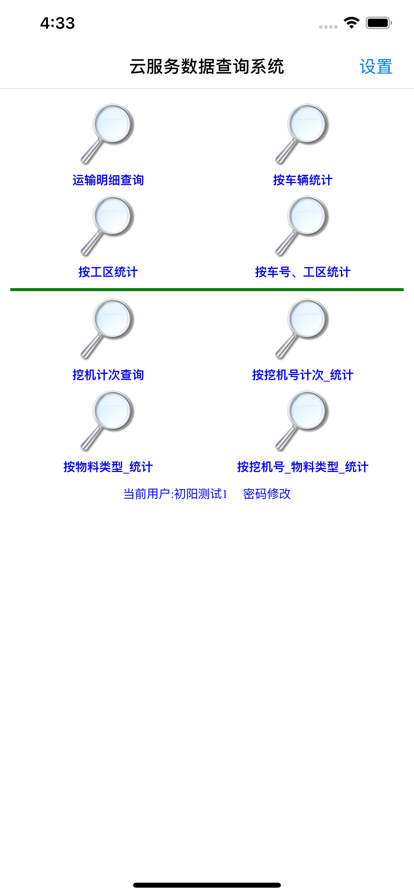 具体功能有: 运输明细查询 按车辆统计 按工区统计 按车号,工区统计 挖机计次查询 按挖机号计次统计 按物料类型统计 按挖机号物料类型统计