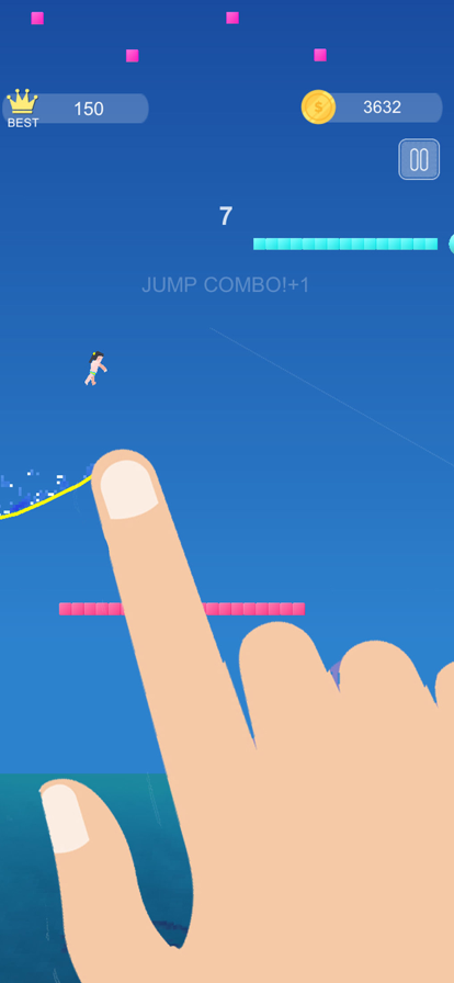 Just draw lines and build unique water slides! Make slapstick,flip and diving combo! That's all!