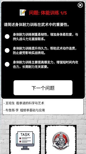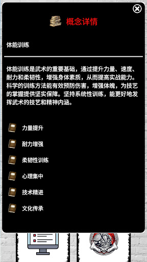 武术训练与锻炼。<br><br>学习以下流派:<br><br>空手道<br><br>综合格斗 (MMA)<br><br>全接触格斗<br><br>功夫<br><br>合气道<br><br>柔道<br><br>跆拳道<br><br>咏春拳<br><br>以色列格斗术 (Krav Maga)<br><br>巴西柔术 (Jiu-Jitsu)<br><br>综合格斗训练与对抗,在家学习自卫术。<br><br>电影与影视中的格斗场景。<br><br>此外,还可找到以下名人的传记与资料:<br><br>李小龙<br><br>叶问<br><br>李连杰<br><br>成龙<br><br>甄子丹<br><br>所有视频均来自 YouTube。您需要联网才能观看视频内容。所有版权归原作者所有,我们只是将他们频道的视频链接到本应用中,从而为他们的频道带来播放量和订阅。<br><br>探索古老的格斗艺术,通过本应用踏上一段激动人心的旅程。本应用是一款终极视频教程应用,旨在教导和训练您掌握多种武术流派。不论您是想学习自卫的初学者,还是希望提升技能的资深练习者,本应用都是您成为真正武者的入口。<br><br>主要功能:<br><br>全面的视频库:沉浸于庞大的高质量视频教程集合中,由来自各个流派的知名武术导师与练习者亲自授课。探索空手道、柔道、跆拳道、巴西柔术、功夫、泰拳等风格,拓宽您的知识与技能。<br><br>分步骤技术教学:本应用致力于您的进步。每个教程都将复杂的动作分解为易于理解的逐步指导,让您能够精准而流畅地掌握基本动作、打击、踢技、防御以及高级套路。<br><br>自卫训练:学习必备的自卫技术,以便在现实生活中保护自己与他人。从情境意识到实用防御战术,本应用将赋予您自信与能力,有效保障自身安全。<br><br>循序渐进的技能等级:无论您是初学者还是资深武者,本应用都适合所有水平。逐级提升,从入门到中级再到高级,在不断增强能力的过程中获得徽章和成就,逐步迈向武术精通。<br><br>训练与锻炼计划:通过专门设计的训练与锻炼课程,提升力量、柔韧性、速度与耐力。像真正的战士一样训练,培养本应用所需的精神纪律。<br><br>对练与伙伴训练:在可控的实战对练与伙伴训练中实践您的技术,增强适应性与时机把握,同时培养同伴之间的合作精神。<br><br>武术哲学:探索武术的丰富历史与哲学,深入理解尊重、纪律、毅力与荣誉这些定义真正武者之路的原则。<br><br>社区支持:与来自世界各地的武术爱好者、导师和练习者交流。分享您的进展,讨论训练策略,并向有经验的武者寻求建议,营造一个支持与激励并存的环境。<br><br>释放您内心的战士,通过本应用开启一段自我探索与体能提升的转变之旅。无论您是想学习自卫、精通某一门武术,还是单纯体验这些古老格斗术的纪律与哲学,本应用都是您的终极训练伙伴。立即下载本应用,开启成为真正武者的道路吧!